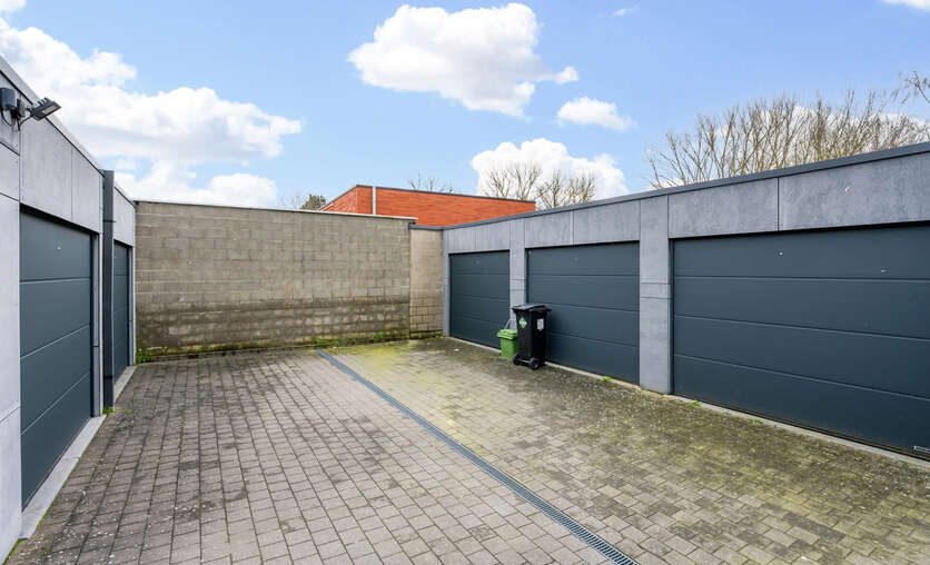 De garagebox is voorzien van een geautomatiseerde sectionaalpoort.