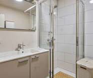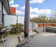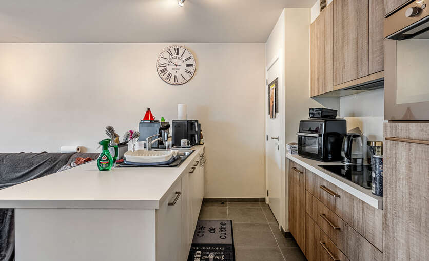 Het appartement bevat 1 slaapkamer, een lichtrijke leefruimte, een geïnstalleerde keuken, badkamer met wastafel en douche, een berging, afzonderlijk toilet en een ruim terras achteraan.