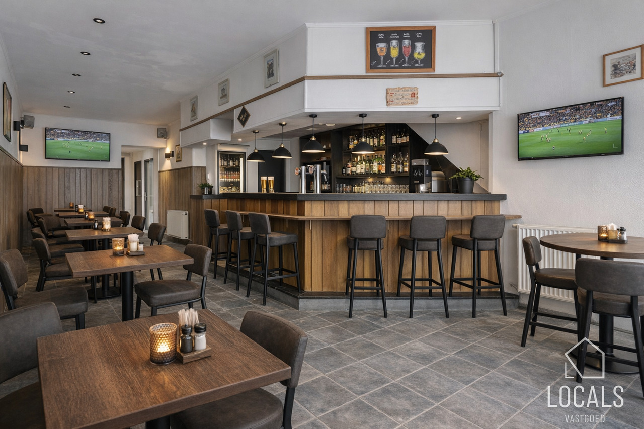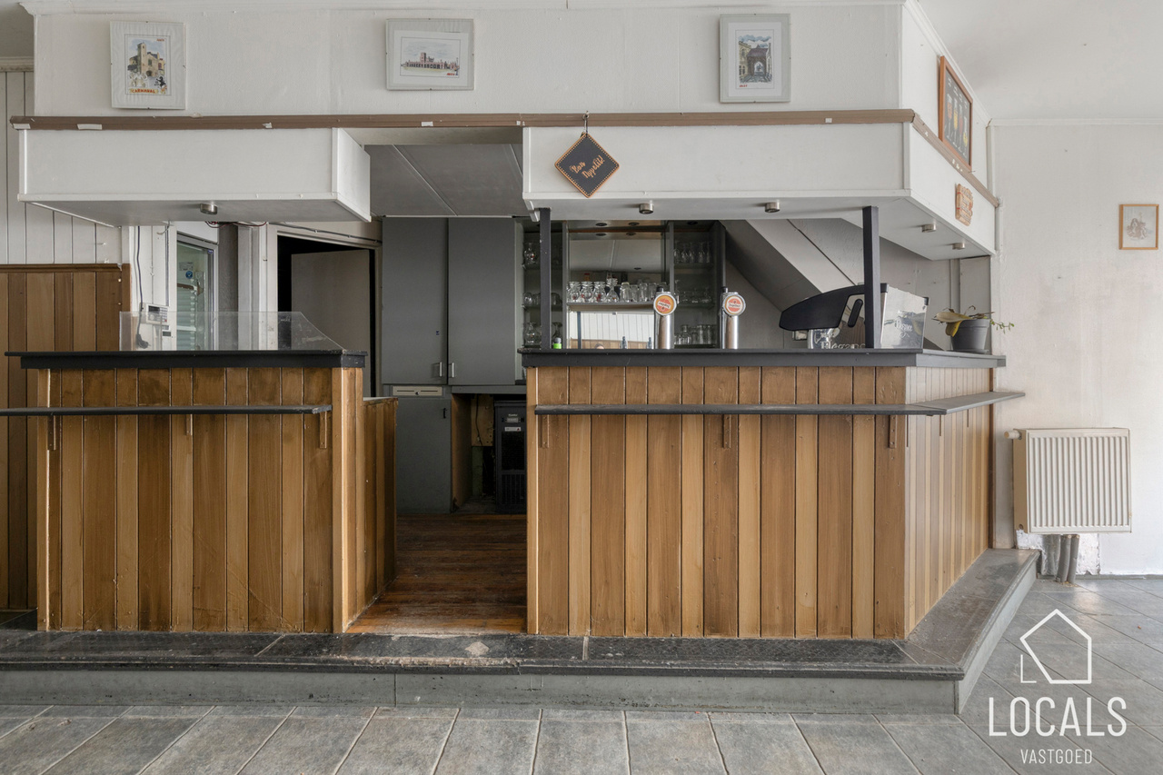Het handelsgelijkvloers, momenteel ingericht als café, kan mits een kleine opfrissing eenvoudig heringericht worden. Bij het binnenkomen vindt u de caféruimte met open bar, aparte mannen- en vrouwentoiletten, toegang tot de kelder en achteraan een extra polyvalente ruimte. Elektriciteit is conform, het pand is energiezuinig en voorzien van centrale verwarming op aardgas. Kortom, een interessante opbrengsteigendom op een strategische locatie. Interesse? Maak snel uw afspraak via 054 23 53 83 of info@localsvastgoed.be.