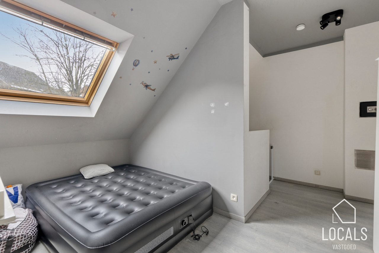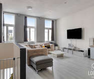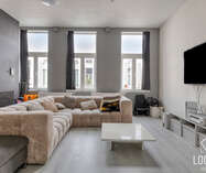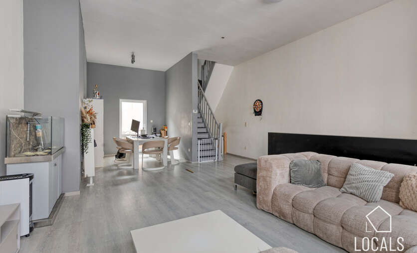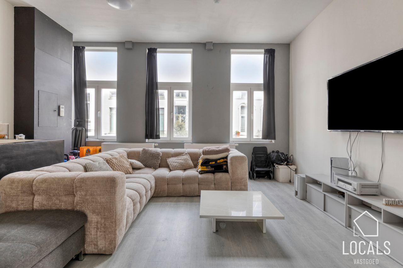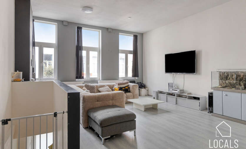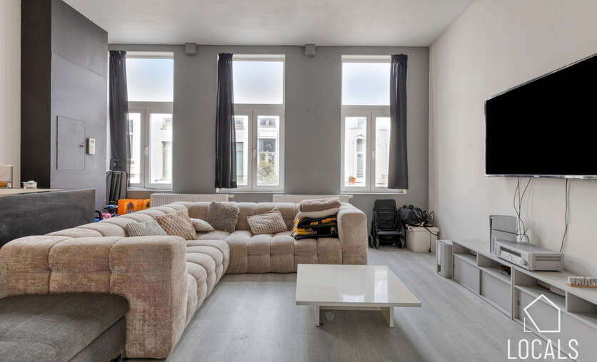Het appartement heeft een bewoonbare oppervlakte van ca. 125m² en omvat een ruime leefruimte van 50m² met aansluitend de keuken en wasplaats. Verder is er een klein terras aanwezig. Op het tussenverdiep bevindt zich de badkamer met inloopdouche, lavabo en toilet. De tweede verdieping telt twee zeer ruime slaapkamers en biedt toegang tot de zolder, ideaal als stockage. Het appartement is momenteel verhuurd aan €780/maand.