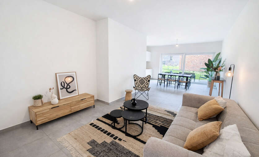 Het terras vormt een heerlijke buitenplek waar je kan ontspannen met zicht op de verzorgde binnentuin, een rustige groene omgeving midden in de stad. Deze maisonette biedt een unieke combinatie van ruimte, functionaliteit en een aangename woonbeleving — een ideale thuisbasis voor wie op zoek is naar comfort in Aalst.