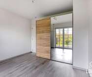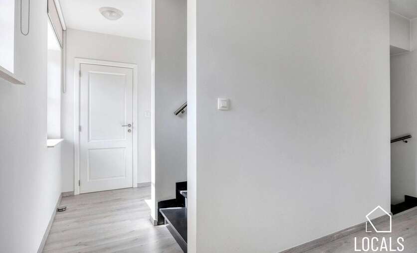 De woning omvat een inkomhal met gastentoilet, lichtrijke woonkamer met ruime open keuken, wasplaats en bureau/slaapkamer op het gelijkvloers. Volledig onderkelderd met veel opslagruimte.