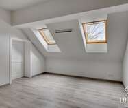 Op de eerste verdieping: nachthal, slaapkamer met zolderkamer, tweede slaapkamer en derde slaapkamer met terras en groen uitzicht, ensuite badkamer (ligbad en dubbele lavabo) en aparte badkamer (douche, toilet en lavabo). Tweede verdieping: vijfde slaapkamer en bergruimte.