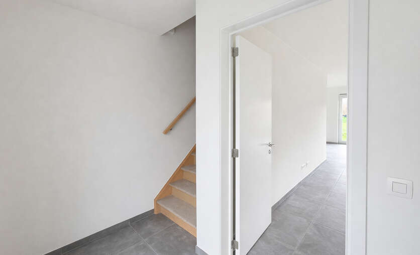 Op de verdieping bevinden zich drie ruime slaapkamers, ideaal voor gezinnen, thuiswerkers of wie graag een hobbykamer voorziet. De badkamer is logisch ingedeeld en biedt alle hedendaagse voorzieningen, terwijl een afzonderlijk toilet extra comfort garandeert. De nachthal verbindt alle ruimtes op een rustige en overzichtelijke manier.
