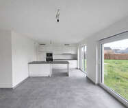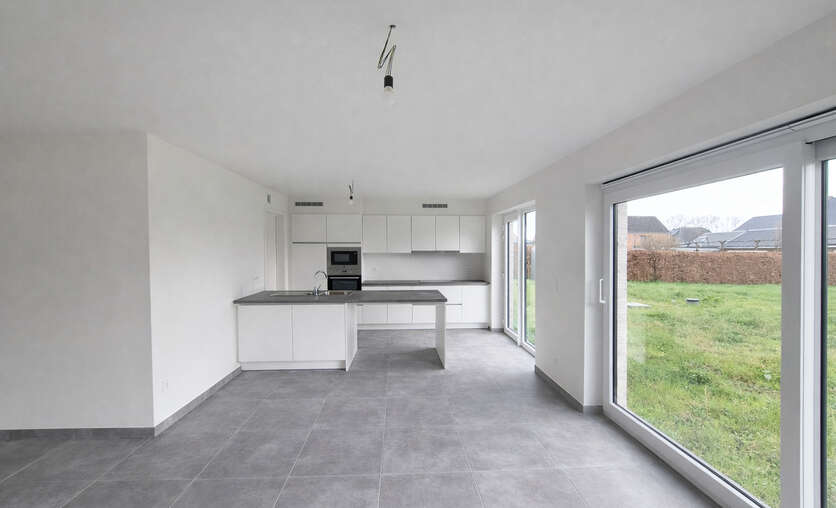 Het gelijkvloers is ontworpen als een open, lichte leefruimte waar functionaliteit en gezelligheid elkaar versterken. De keuken sluit mooi aan op de eethoek, waardoor koken en tafelen een vanzelfsprekende flow krijgen. De zithoek kijkt uit op de tuin en vormt een warme plek om te ontspannen. De inkomhal, het gastentoilet en de inpandige garage zorgen voor extra comfort en praktische meerwaarde in het dagelijkse leven.