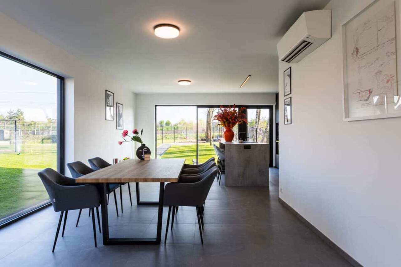 Elke slaapkamer beschikt over een eigen warmtepomp. Dankzij 18 zonnepanelen, een thuisbatterij en een regenwaterput van 7.500 liter geniet u van een bijzonder lage energiekost. Daarnaast is de woning uitgerust met ventilatiesysteem type D, wat resulteert in een uitzonderlijk E-peil van -15. De mobiscore van 7,3/10 bevestigt de goede bereikbaarheid van voorzieningen.
