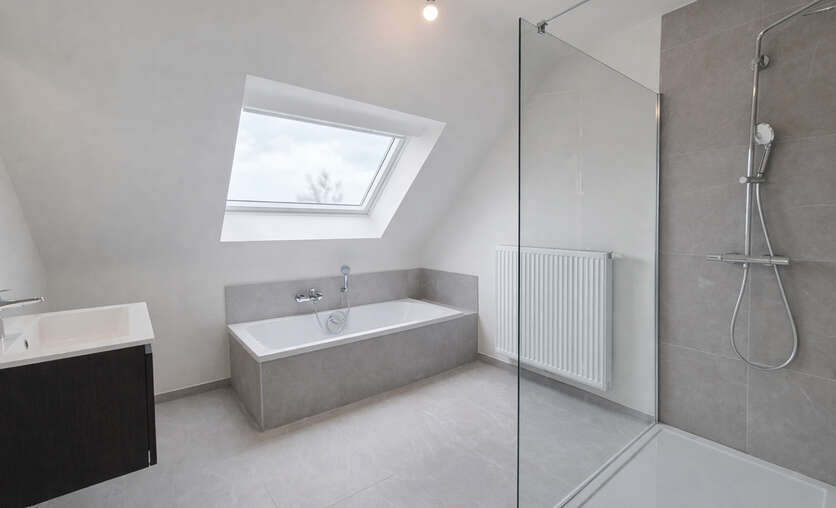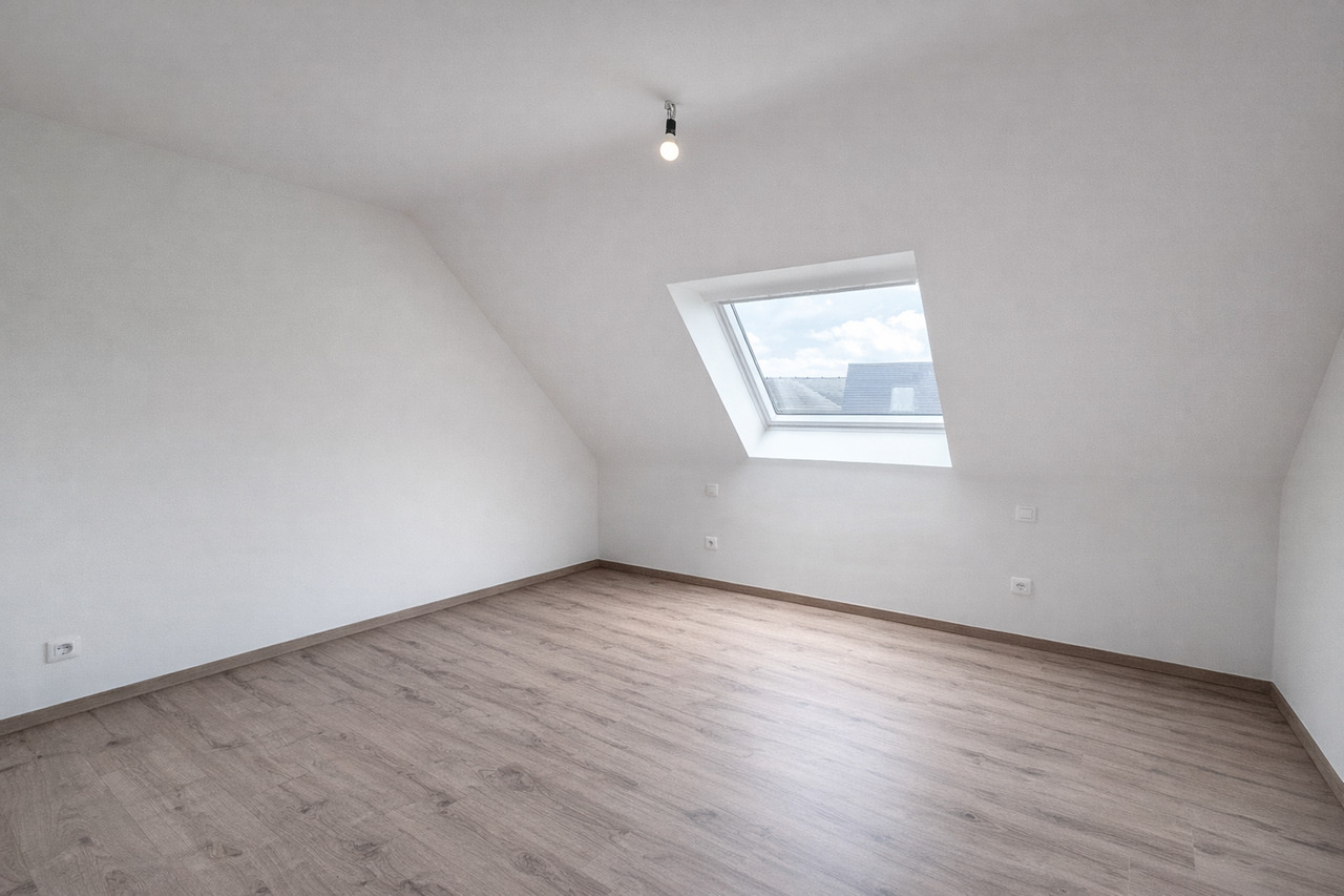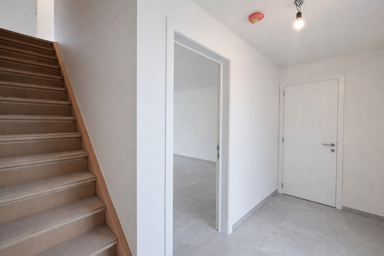 Op de verdieping bevinden zich drie ruime slaapkamers, ideaal voor gezinnen, thuiswerkers of wie graag een hobbykamer voorziet. De badkamer is logisch ingedeeld en biedt alle hedendaagse voorzieningen, terwijl een afzonderlijk toilet extra comfort garandeert. De nachthal verbindt alle ruimtes op een rustige en overzichtelijke manier.