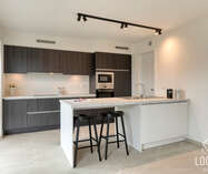 Het gelijkvloers is ontworpen als een open, lichte leefruimte waar functionaliteit en gezelligheid elkaar versterken. De keuken sluit mooi aan op de eethoek, waardoor koken en tafelen een vanzelfsprekende flow krijgen. De zithoek kijkt uit op de tuin en vormt een warme plek om te ontspannen. De inkomhal, het gastentoilet en de inpandige garage zorgen voor extra comfort en praktische meerwaarde in het dagelijkse leven.