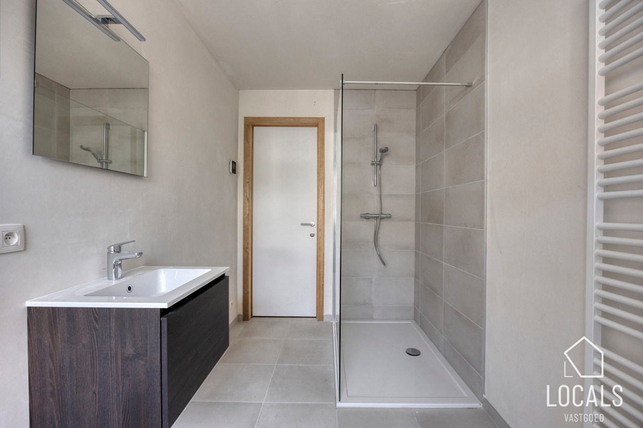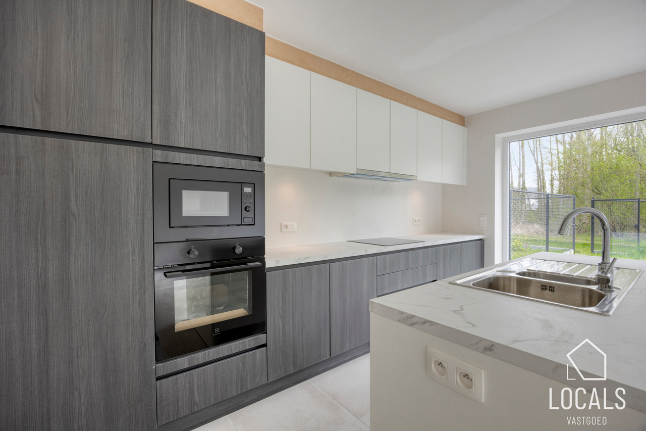 Op de gelijkvloerse verdieping geniet je van een open en lichtrijke leefruimte met geïntegreerde keuken en een gezellige zithoek. Daarnaast is er een praktische, afzonderlijke berging voorzien.