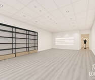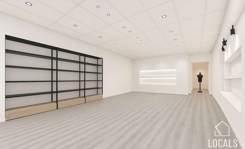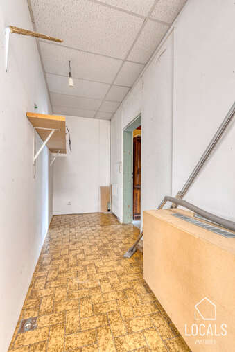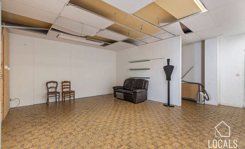 De grote handelsruimte vooraan biedt tal van mogelijkheden en kan naar eigen smaak worden ingericht: als winkel, kantoor, praktijkruimte, hobbykamer of zelfs als extra leefruimte. Achter deze ruimte bevindt zich de privé inkomhal die toegang geeft tot de lichtrijke leefruimte met eetplaats en zithoek. Verder zijn er een aparte keuken, een toilet en een ruime berging aanwezig, wat de woning bijzonder praktisch maakt.