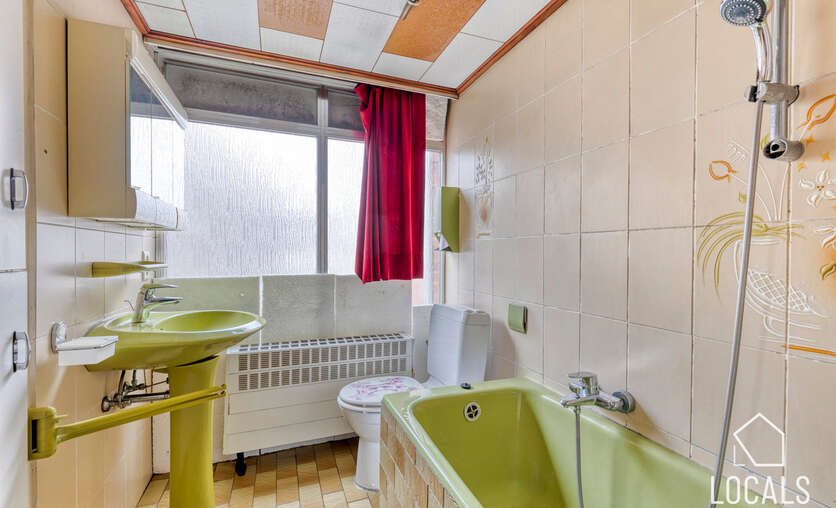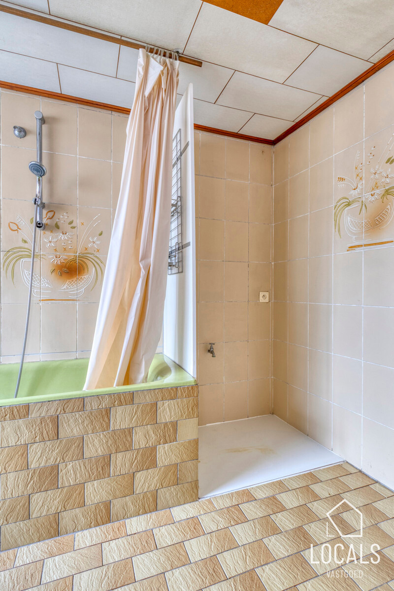 Op de eerste verdieping bevinden zich twee ruime slaapkamers en een badkamer voorzien van ligbad en een tweede toilet. Achteraan de woning is er een gezellig terras dat doorloopt in de onderhoudsvriendelijke tuin, ideaal om een sfeervolle buitenplek te creëren. De garage achteraan maakt het geheel compleet en biedt extra comfort.