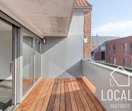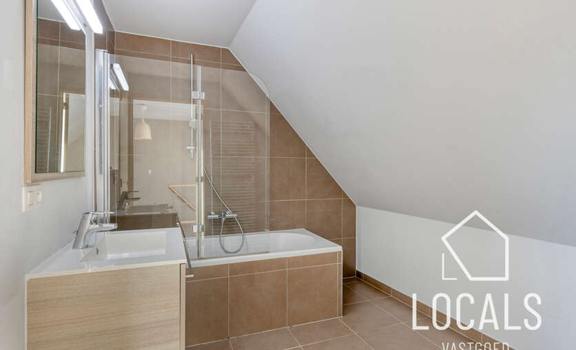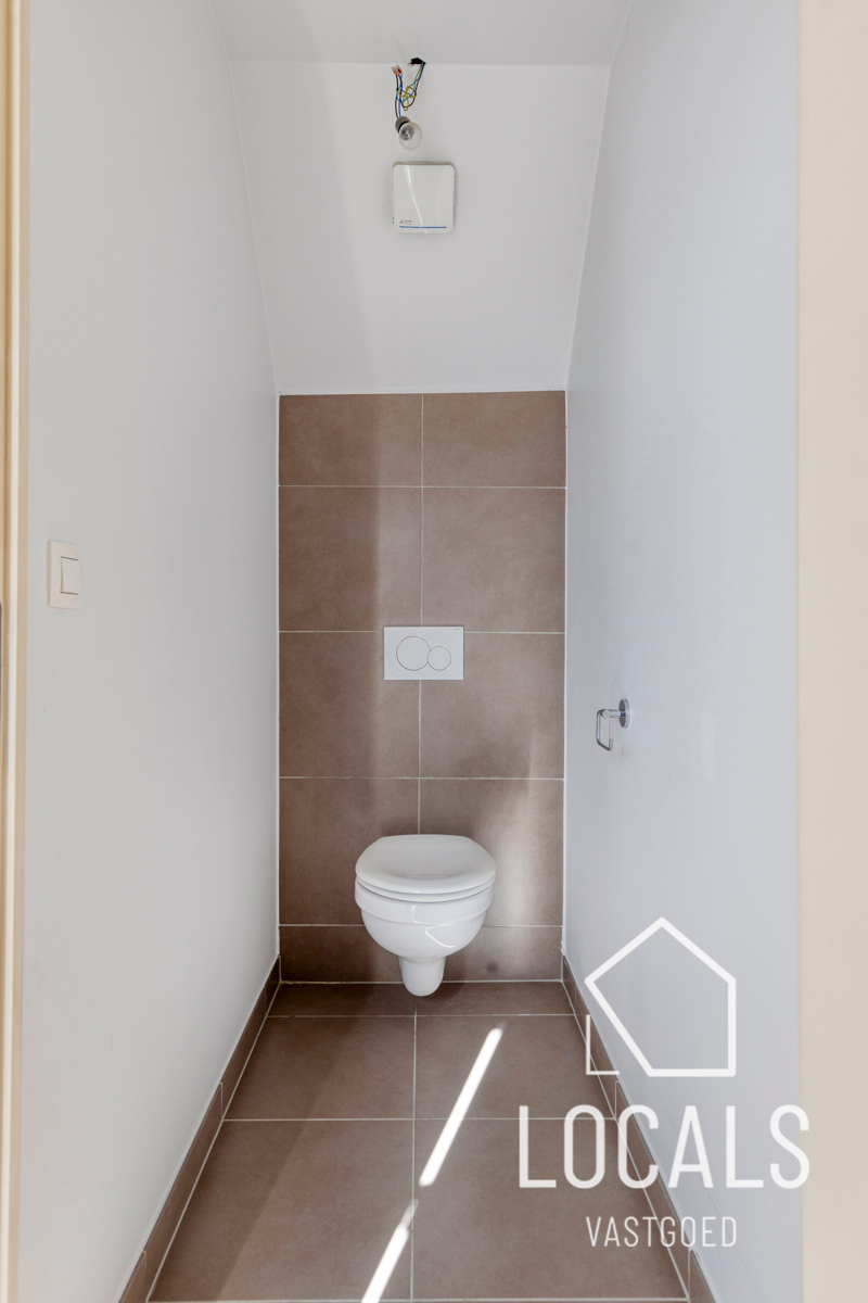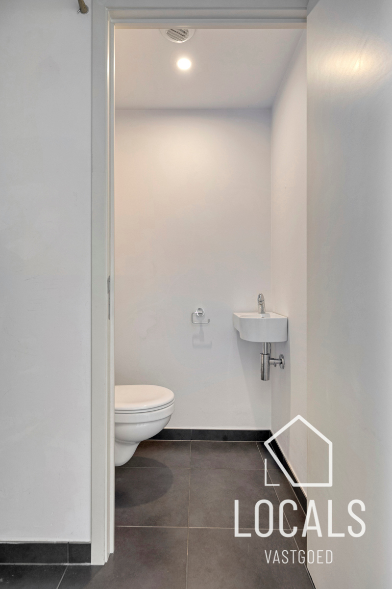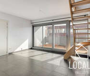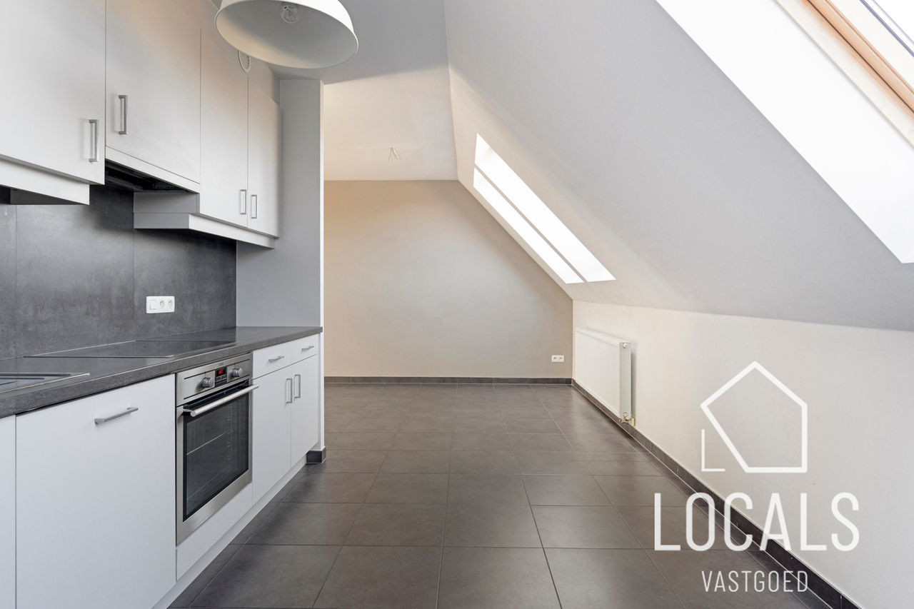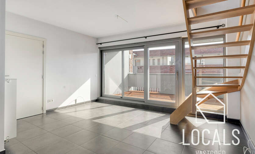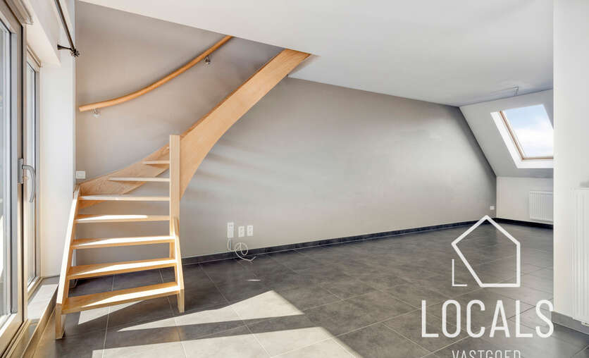 Indeling: De lift brengt u naar de hoogste verdieping. Bij het binnenkomen treft u de leefruimte aan, voorzien van een groot schuifraam naar het terras. Achter de hoek bevindt zich de open keuken, samen met een praktische berging alsook een afzonderlijk toilet. Via de trap bereikt u de ruime slaapkamer, met aansluitend de badkamer en een tweede, afzonderlijk toilet.