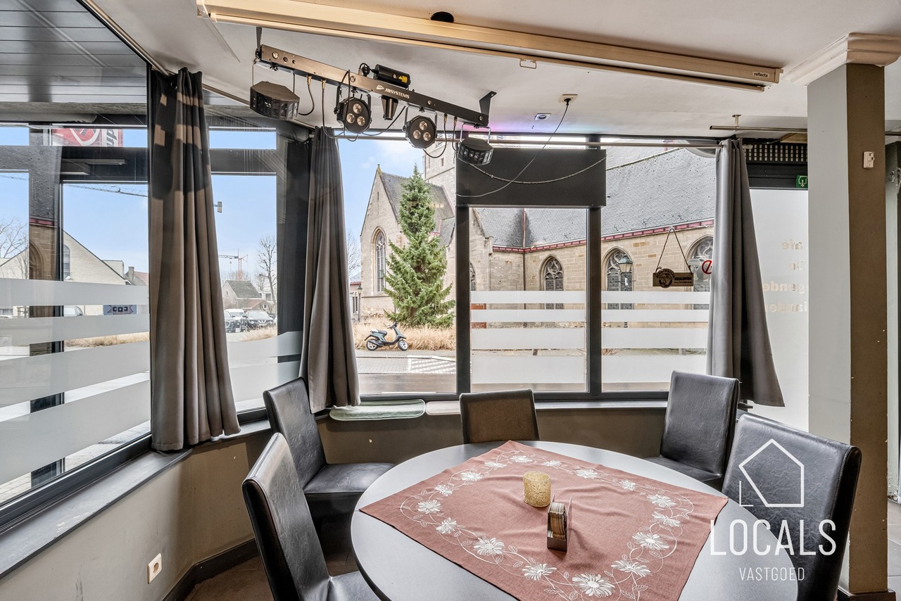 Dit veelzijdige handelspand is gelegen op een absolute toplocatie in het dorpscentrum van Denderhoutem, waar zichtbaarheid en bereikbaarheid hand in hand gaan.