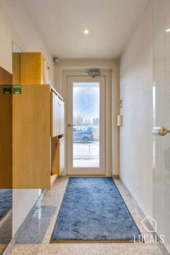 Bij het binnenkomen van het appartement betreedt u de eerste verdieping via een ruime inkomhal met apart gastentoilet en praktische ingemaakte kast. Aansluitend bevindt zich de lichtrijke leefruimte met zit- en eetgedeelte en de volledig geïnstalleerde open keuken. Deze verdieping beschikt over twee terrassen: een gezellig terras aan de voorzijde en een ruim zuidgericht terras van 13,5 m² aan de achterzijde, beide met zicht op groen.