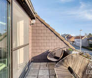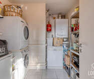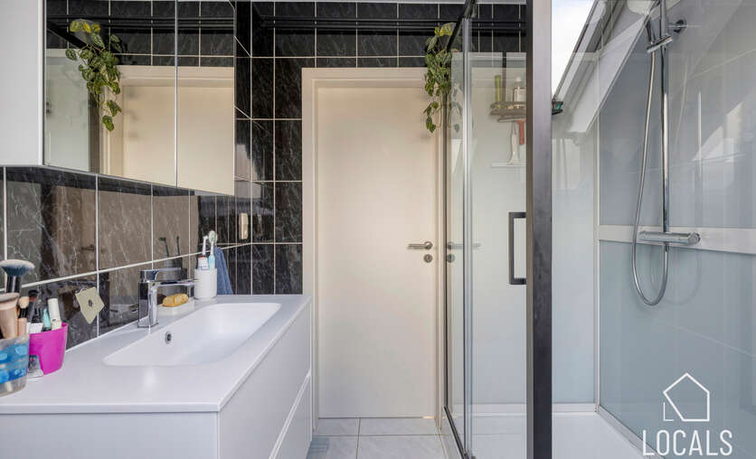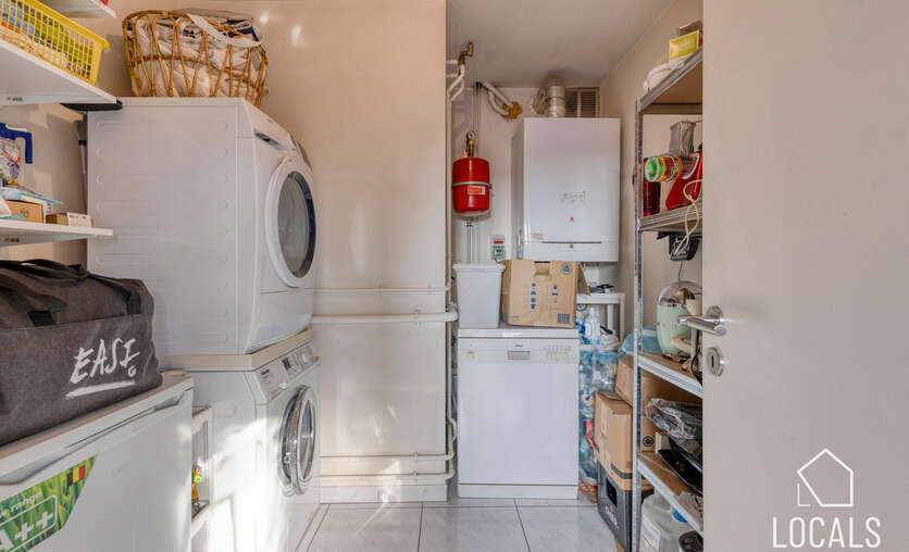 Bij binnenkomst wordt u verwelkomd in een ruime en lichtrijke leefruimte, die naadloos overgaat in een open keuken. Aanpalend bevindt zich een praktische berging met aansluiting voor een wasmachine en voldoende opslagruimte. Grote raampartijen zorgen voor een overvloed aan natuurlijk licht, wat de leefruimte een warme en uitnodigende sfeer geeft. De 1ste badkamer is uitgerust met een douche, daarnaast vindt u twee volwaardige slaapkamers en een apart gastentoilet. Deze slimme indeling maakt de duplex zowel functioneel als elegant.