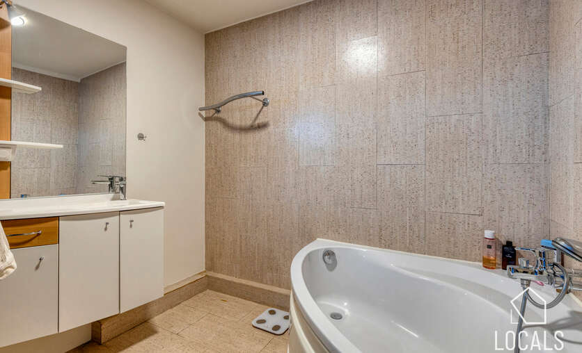 Via een trap bereikt u de bovenverdieping, waar u een 2de slaapkamer aantreft. Deze verdieping biedt tevens een tweede badkamer, voorzien van een bad, waardoor het uitermate geschikt is voor gezinnen of mensen die op zoek zijn naar extra comfort. Garage en staanplaats inbegrepen in de vraagprijs.