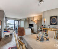 Het appartement is afgewerkt met kwaliteitsvolle materialen, waaronder een massieve parketvloer, wat zorgt voor een warme en stijlvolle uitstraling. Bovendien beschikt het gebouw over een lift met persoonlijke toegangssleutel, die uitsluitend toegang geeft tot het verdiep van dit duplexappartement, een extra troef op vlak van privacy en comfort.
