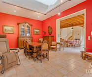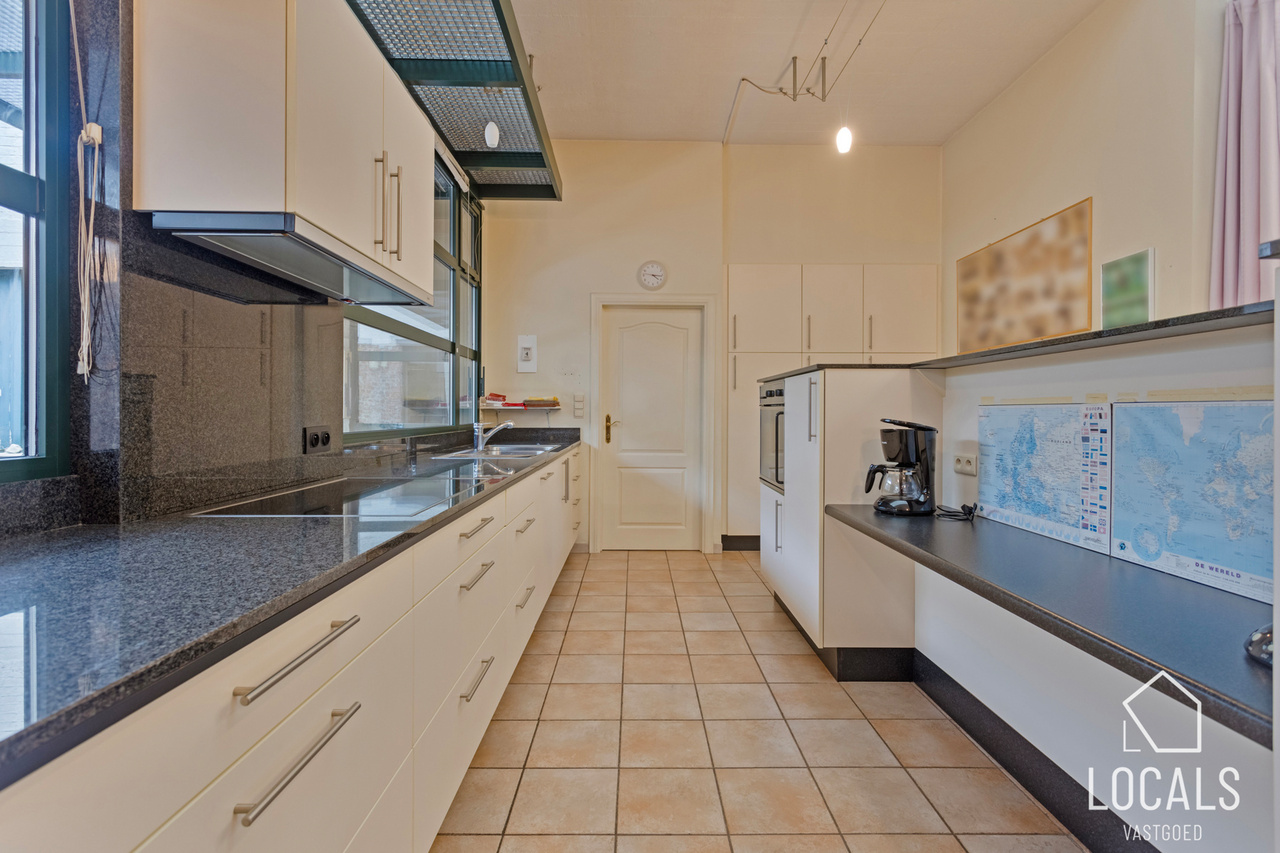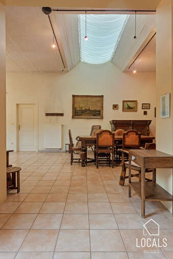 De eigendom heeft enorm veel ruimte en geniet verschillende gebruiksmogelijkheden. Er is een garage voor 2+ wagens alsook een grote berging. Palend aan de woning is een atelier van meer dan 100m² alsook een bijhorend bureau. Ideaal voor een professionele activiteit/kantoor/praktijk/sport (dansschool, fitness, …)/stockage/… of simpelweg een hobby die veel plaats vraagt. Deze oppervlakte kan eventueel gecombineerd worden met de woonfunctie, ideaal als kangoeroewoning.