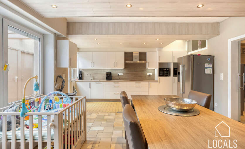 Op zoek naar een instapklare en ruime woning met zuidwest gerichte tuin, garage en 4 slaapkamers? Dan is deze goed gelegen en gezellige woning vast iets voor jou. Op het gelijkvloers tref je de grote leefruimte, keuken met zicht op de tuin, een lichtrijke veranda, toilet, bergruimte en een inpandige garage. Op de verdieping is er een nachthal, badkamer (met ligbad + douche, toilet & wastafel), 3 slaapkamers, de vaste trap naar de zolder geeft toegang tot de 4de slaapkamer. Zuidwest georiënteerde tuin, totale grondoppervlakte 3a23ca en bewoonbare oppervlakte 233m2. Nieuwe keuken (2023), epc 327 kWh/m² - label D, dubbele beglazing, centrale verwarming gas en pelletkachel. Goed gelegen, dit op slechts 200 m van het station Iddergem. Op slechts 7km oprit E40 Affligem en 10km oprit E40 Aalst. Veel parking nabij. G & P-score: B. Voor meer informatie en/of bezichtiging: 054 23 53 83 of info@localsvastgoed.be