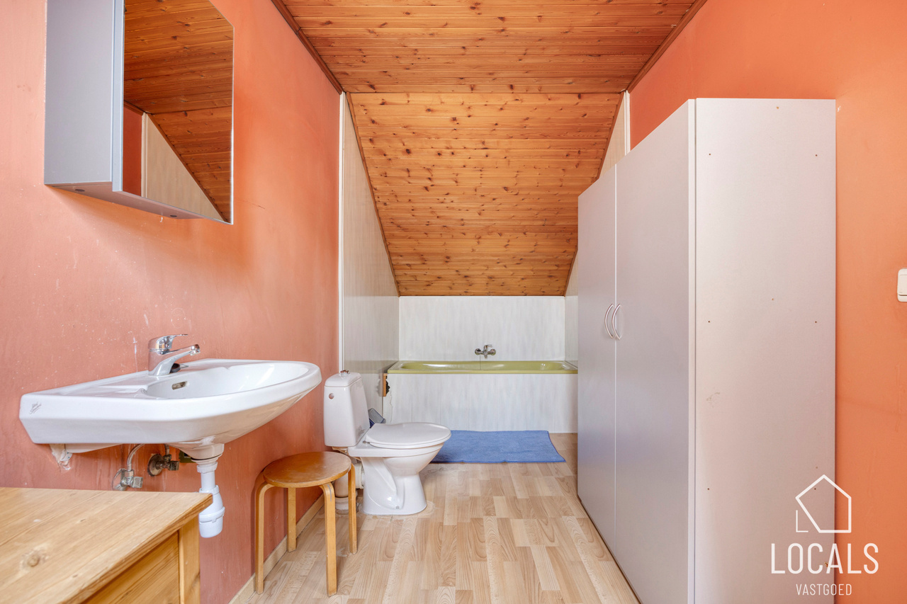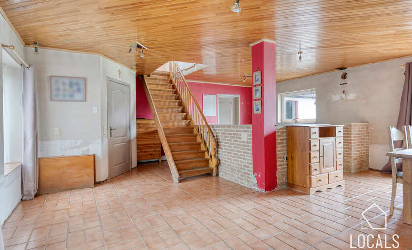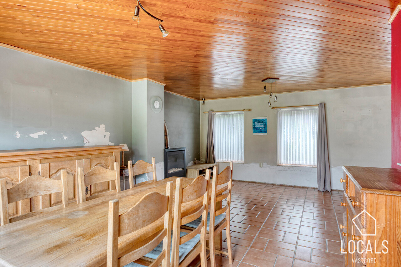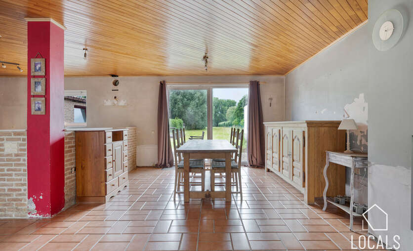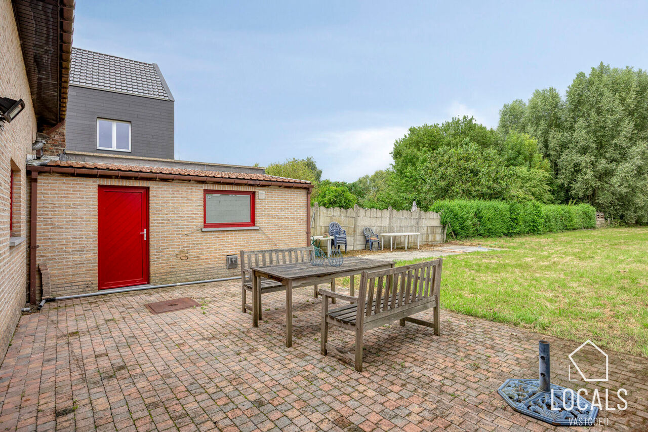 Deze woning heeft een inkomhal, ruime woonkamer met open keuken, bergruimte, garage en een badkamer (met inloopdouche). Het verdiep heeft een badkamer (met ligbad), een nachthal en 3 slaapkamers. Vanuit de leefruimte/keuken geniet je van een prachtig zicht op de grote tuin en het landelijke uitzicht. Totale grondoppervlakte 12a41ca. Private parkeerplaatsen voor de woning. Deze is top gelegen, dit vlakbij recreatiedomein De Gavers en nabij een bushalte. Gunstig asbestinventarisattest. P-score: A – G-score: A. Dit pand is onderhevig aan de renovatieverplichting die door de Vlaamse overheid wordt opgelegd voor residentiële gebouwen. Meer informatie: www.energiesparen.be Voor meer informatie en/of een bezichtiging: 054 23 53 83.