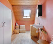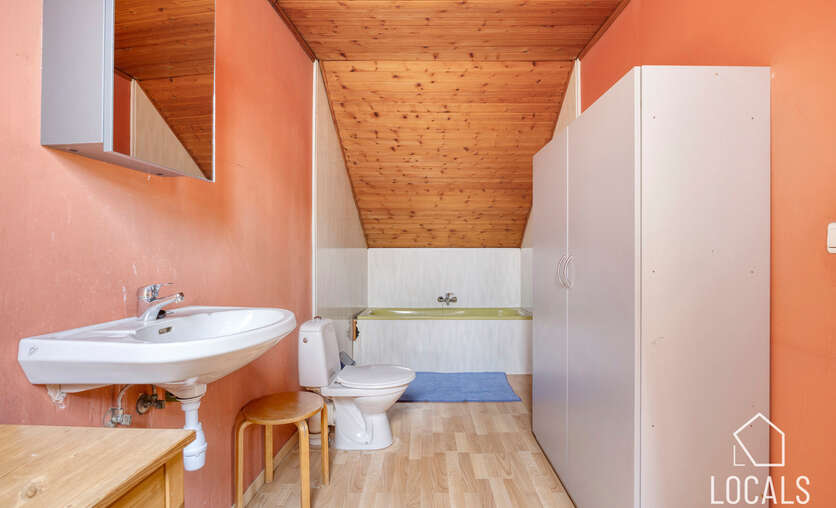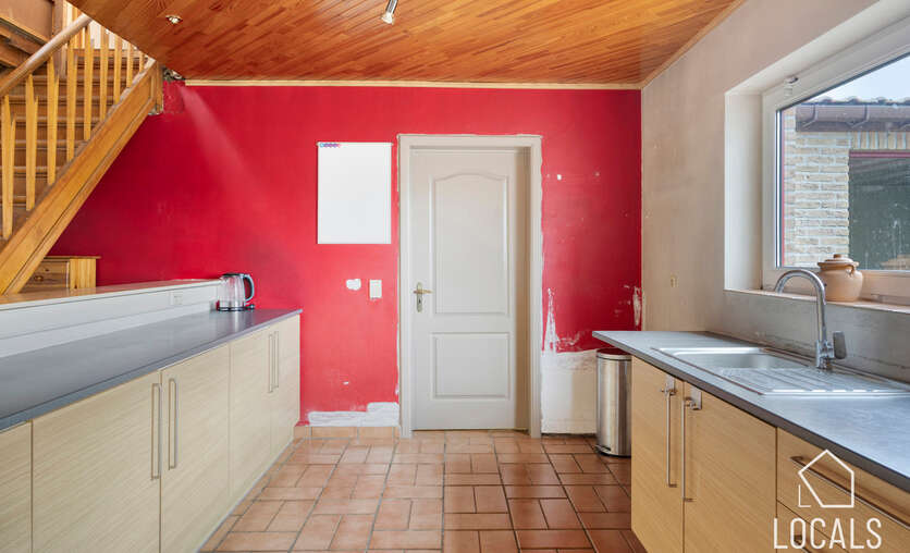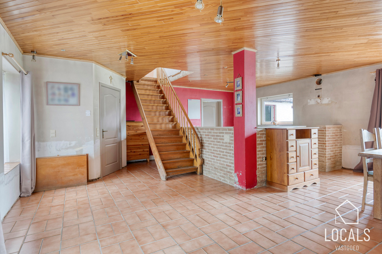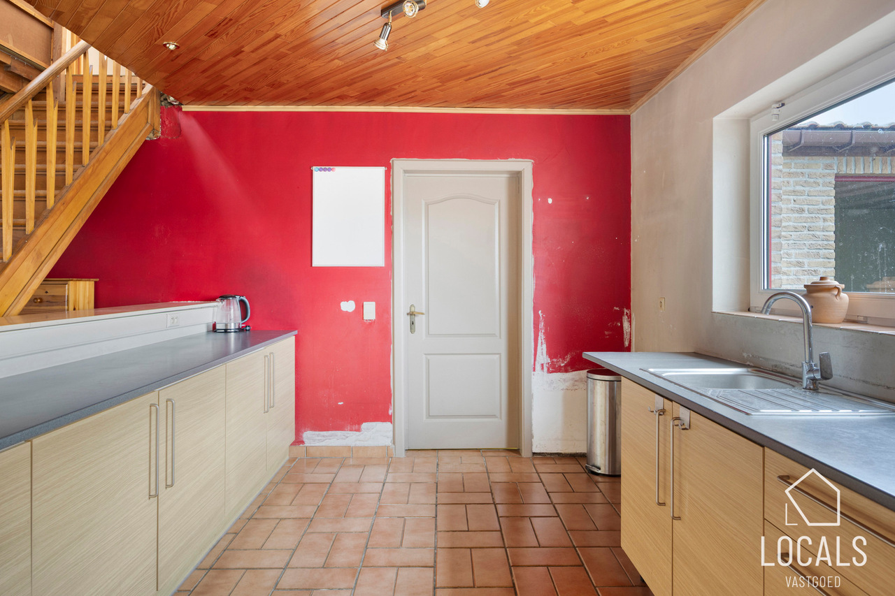 Deze woning heeft een inkomhal, ruime woonkamer met open keuken, bergruimte, garage en een badkamer (met inloopdouche). Het verdiep heeft een badkamer (met ligbad), een nachthal en 3 slaapkamers. Vanuit de leefruimte/keuken geniet je van een prachtig zicht op de grote tuin en het landelijke uitzicht. Totale grondoppervlakte 12a41ca. Private parkeerplaatsen voor de woning. Deze is top gelegen, dit vlakbij recreatiedomein De Gavers en nabij een bushalte. Gunstig asbestinventarisattest. P-score: A – G-score: A. Dit pand is onderhevig aan de renovatieverplichting die door de Vlaamse overheid wordt opgelegd voor residentiële gebouwen. Meer informatie: www.energiesparen.be Voor meer informatie en/of een bezichtiging: 054 23 53 83.