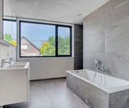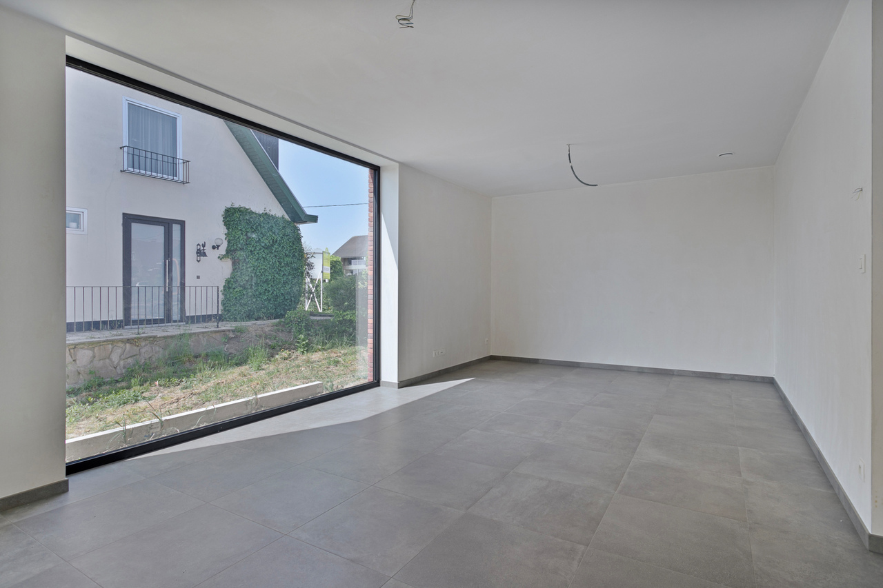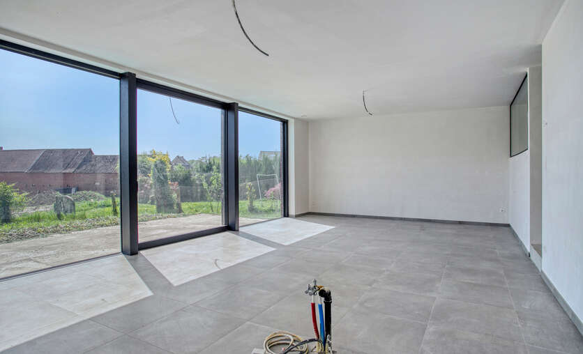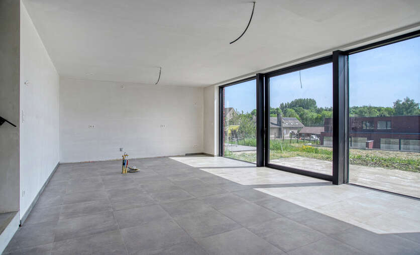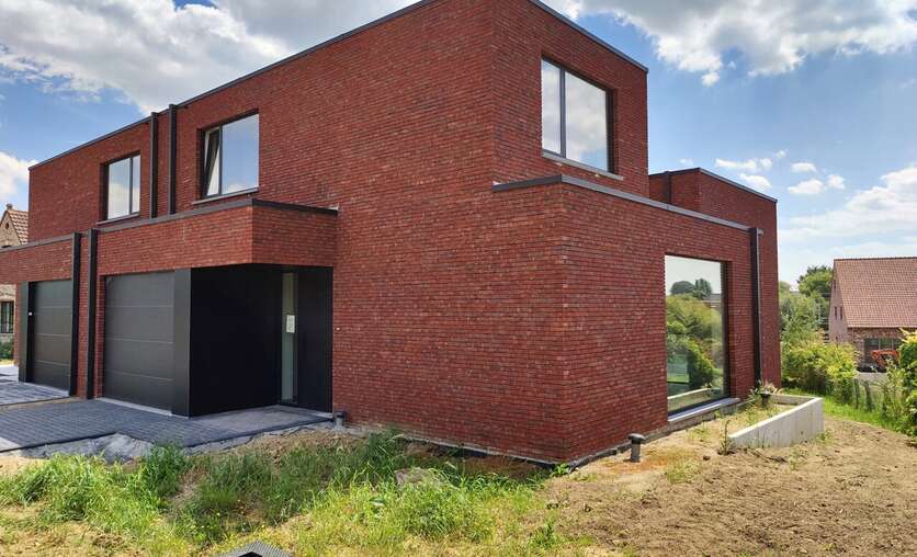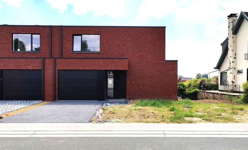 Ontdek deze moderne en lichtrijke halfopen nieuwbouwwoning, gebouwd met oog voor kwaliteit, energiezuinigheid, comfort en duurzaamheid. Bij het binnenkomen word je verwelkomd in een inkomhal met gastentoilet, aansluitend is er een ruime zonnige woonkamer, eetkamer met open keuken, bergruimte en een ruime garage (en oprit). De verdieping heeft een nachthal, 3 ruime slaapkamers, bergruimte en een badkamer dewelke is voorzien van een ligbad, inloopdouche, toilet en dubbele wastafel. Vanuit de leefruimten heeft men zicht op het ruime terras en tuin, welke perfect zuid-georiënteerd zijn! De woning heeft een bewoonbare oppervlakte van maar liefst 235m².