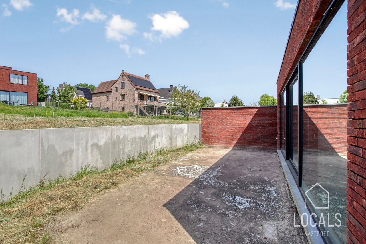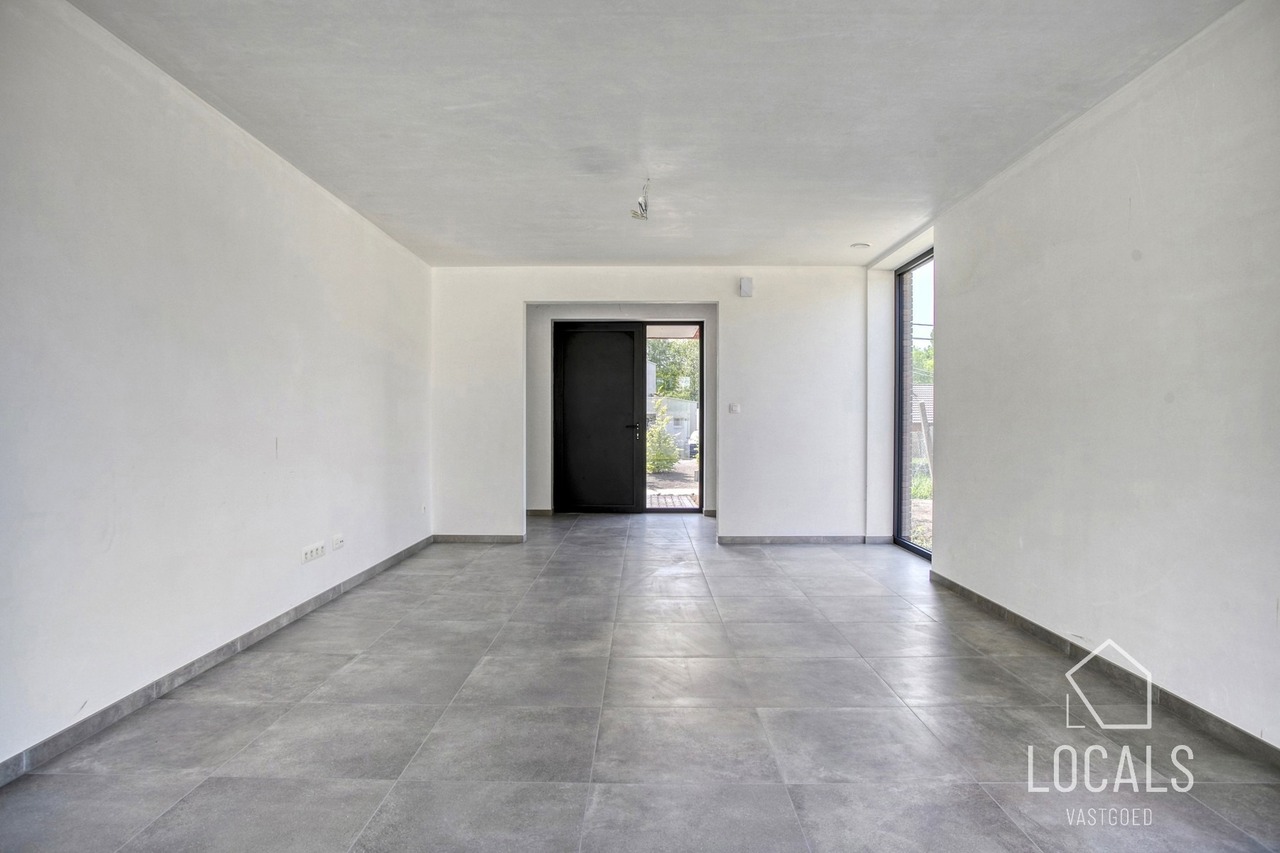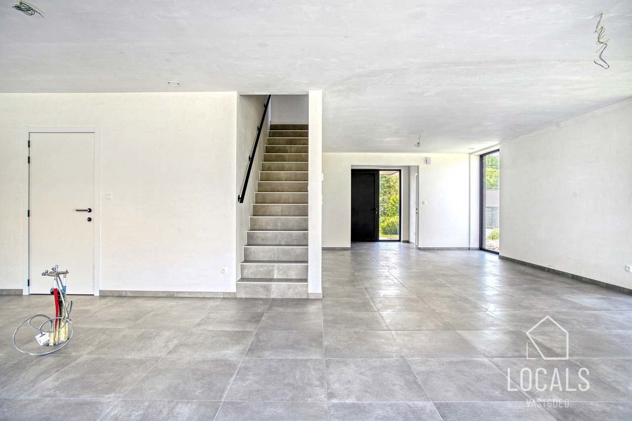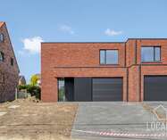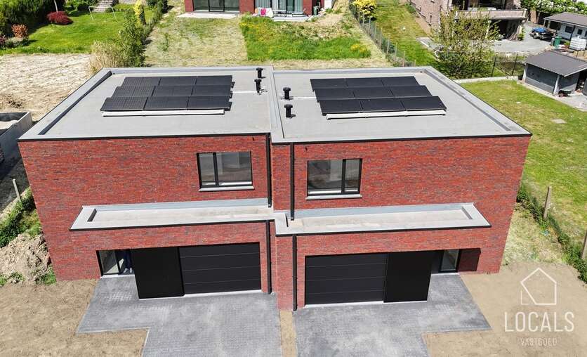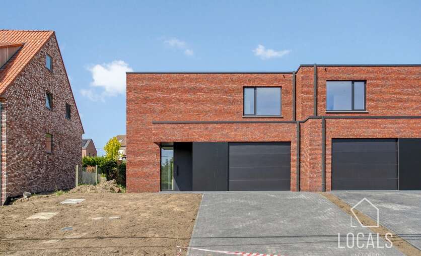 Ontdek deze moderne en lichtrijke halfopen nieuwbouwwoning, gebouwd met oog voor kwaliteit, energiezuinigheid, comfort en duurzaamheid. Bij het binnenkomen word je verwelkomd in een inkomhal met gastentoilet, aansluitend is er een ruime zonnige woonkamer (40m²) met open keuken, bergruimten en een ruime garage. De verdieping heeft een nachthal, 3 ruime slaapkamers, apart toilet en een badkamer dewelke is voorzien van een ligbad, inloopdouche en dubbele wastafel. Vanuit de leefruimten heeft men zicht op het ruime terras en tuin. Naast de garage is er een oprit voor meerdere wagens. De woning heeft een bewoonbare oppervlakte van maar liefst 215m². De glazen deur tussen hall en leefruimte wordt nog geplaatst.