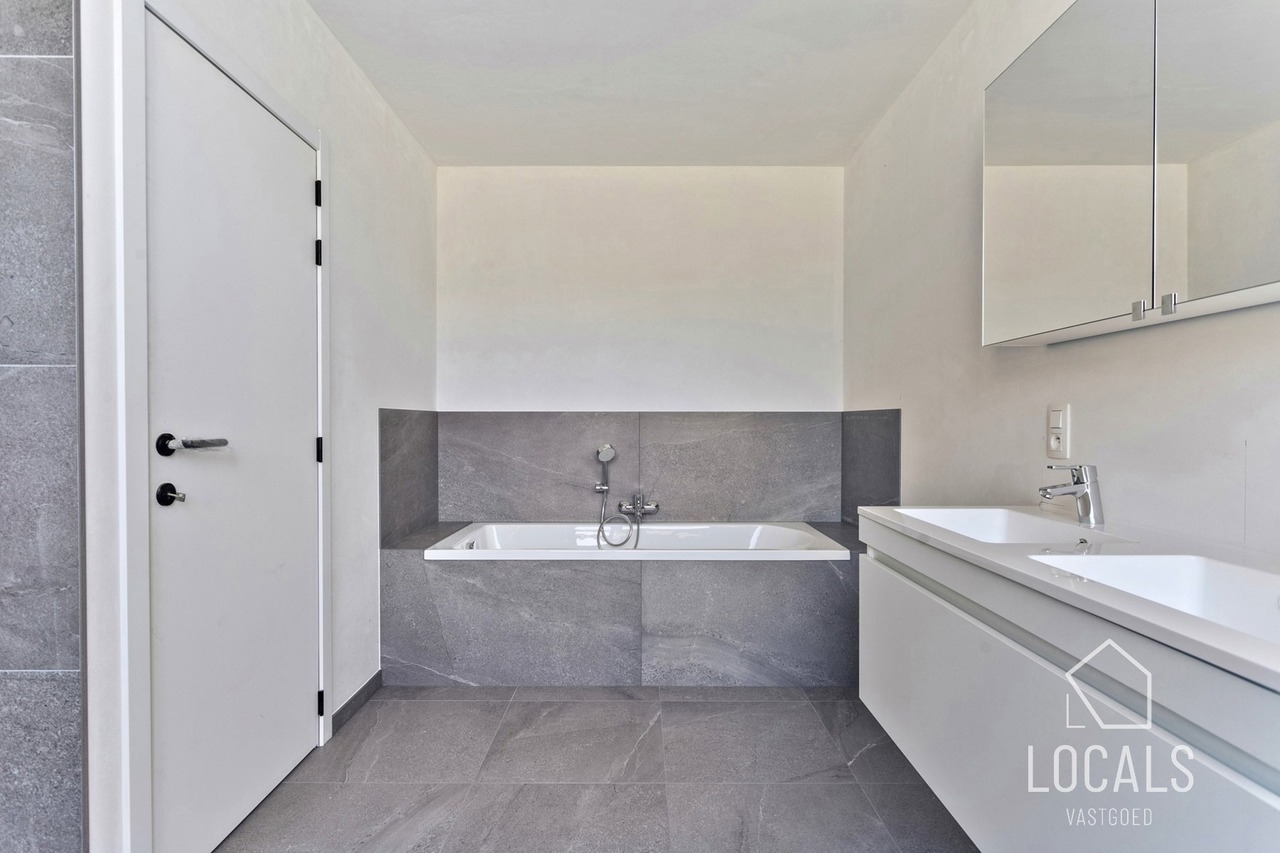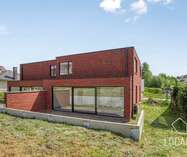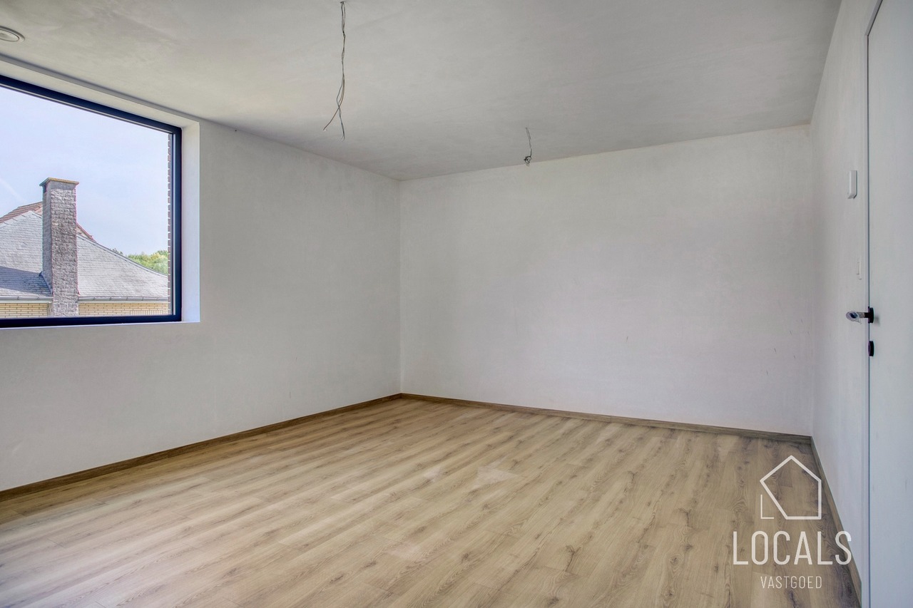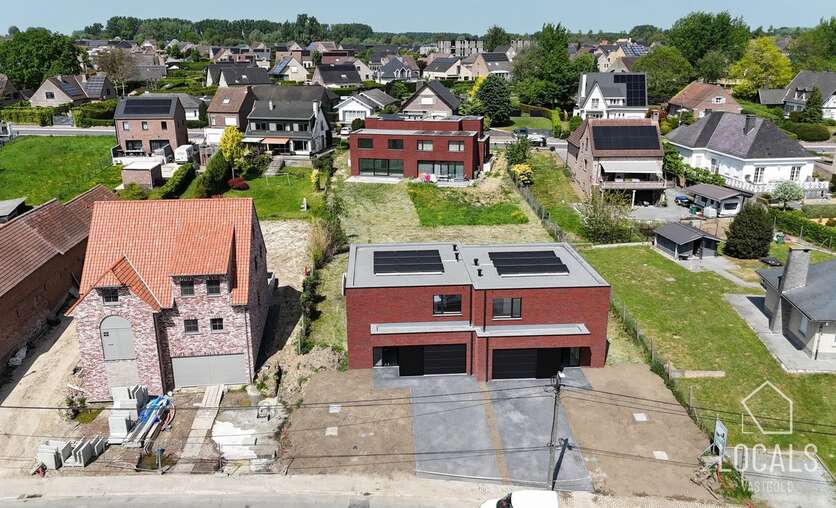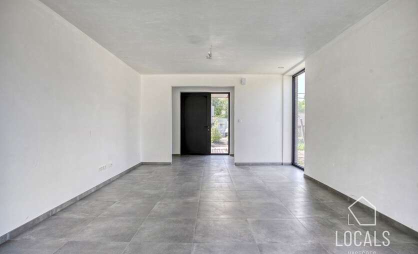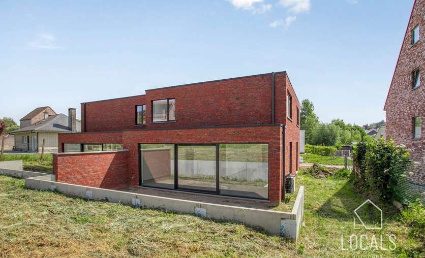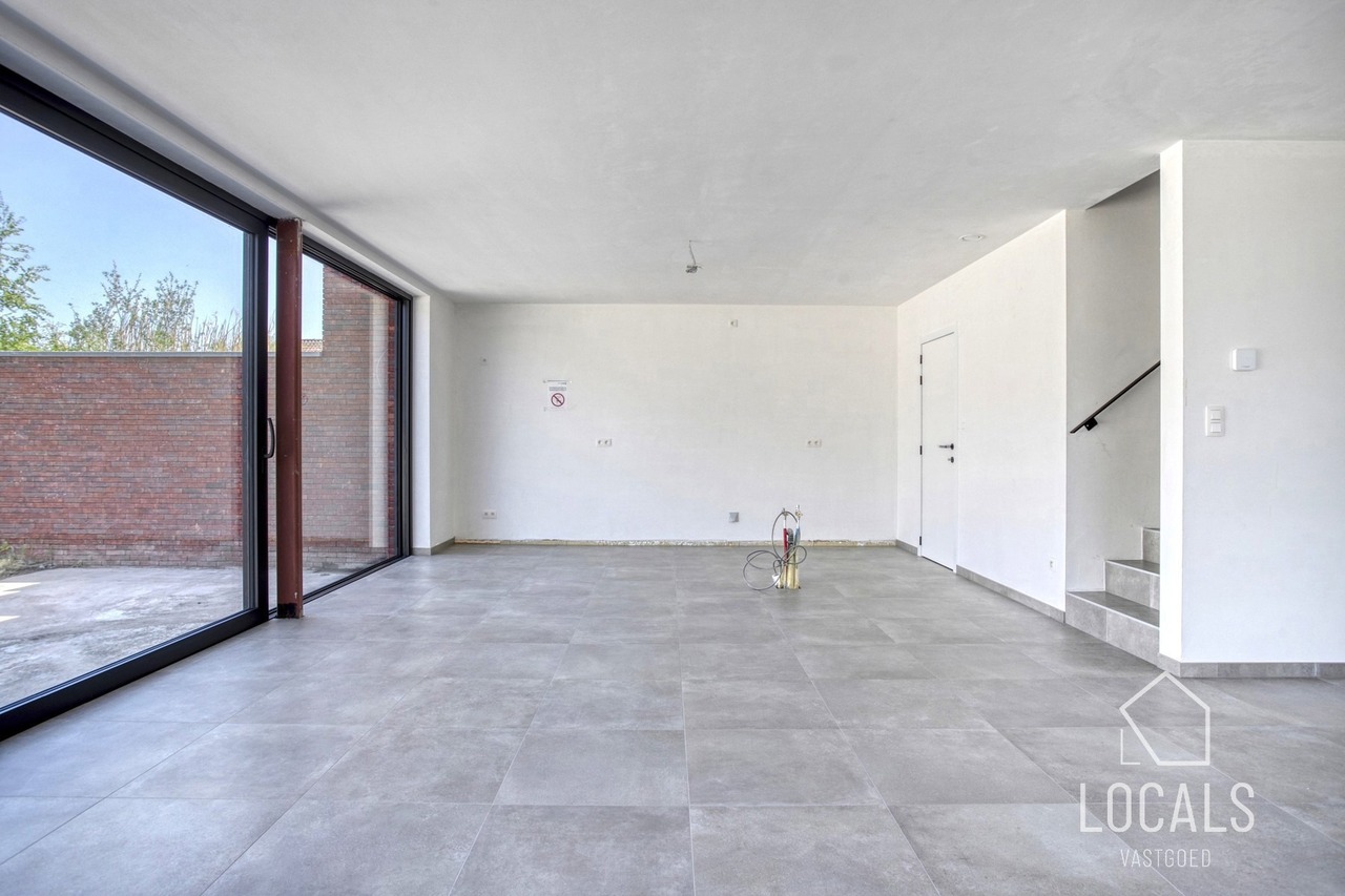 Ontdek deze moderne en lichtrijke halfopen nieuwbouwwoning, gebouwd met oog voor kwaliteit, energiezuinigheid, comfort en duurzaamheid. Bij het binnenkomen word je verwelkomd in een inkomhal met gastentoilet, aansluitend is er een ruime zonnige woonkamer (40m²) met open keuken, bergruimten en een ruime garage. De verdieping heeft een nachthal, 3 ruime slaapkamers, apart toilet en een badkamer dewelke is voorzien van een ligbad, inloopdouche en dubbele wastafel. Vanuit de leefruimten heeft men zicht op het ruime terras en tuin. Naast de garage is er een oprit voor meerdere wagens. De woning heeft een bewoonbare oppervlakte van maar liefst 215m². De glazen deur tussen hall en leefruimte wordt nog geplaatst.