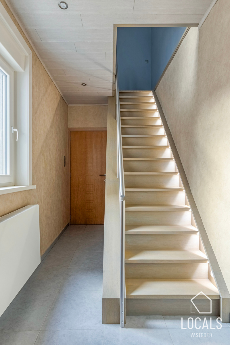 Deze instapklare woning heeft een inkomhal met toilet, woonkamer met open keuken, nachthal, badkamer (met toilet, ligbad/douche en wastafel) en een ruime garage. De verdieping heeft een nachthal en 3 ruime slaapkamers. De tuin is eveneens langs achteraan te bereiken en biedt diverse autostaanplaatsen. Dubbele beglazing (deels zonnewerend), rolluiken, ontkalker, centrale verwarming, warmtepomp/airco (L/L), dakisolatie, 12 zonnepanelen (2023), perfecte oriëntatie, geen renovatieplicht – epc 286 kWh/m² - label C,.. zijn enkele van zijn troeven. P-score: A – G-score: A. Strategisch gelegen, dit met makkelijke verbinding naar station, oprit E40 en in de nabijheid van winkels & scholen. Voor meer informatie en/of bezichtiging: 054 23 53 83 of info@localsvastgoed.be