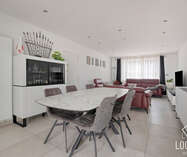 Bij het betreden van de woning komt u in de inkomhal die toegang geeft tot de ruime en lichtrijke woonkamer. De recent vernieuwde keuken is praktisch ingericht en sluit aan op verschillende bergplaatsen en een aparte wasplaats. Op het gelijkvloers bevindt zich bovendien een slaapkamer en een badkamer uitgerust met douche, toilet en wastafel.