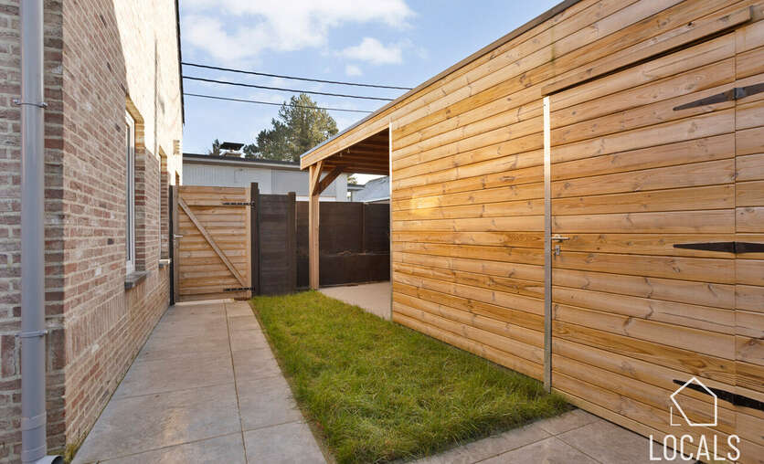De eerste verdieping biedt plaats voor twee slaapkamers en een nachthal die perfect kan dienen als bureau of dressing. De mooie badkamer is uitgerust met een douche in bad, lavabo en tweede toilet. Op zonnige dagen is het heerlijk vertoeven in de aangename buitenruimte, waar je in alle rust kan ontspannen. Buiten beschik je bovendien over een vergunde carport (die later nog kan dienst doen als overdekte autostaanplaats) en extra buitenberging, ideaal voor fietsen - tuingerief of extra opslag.