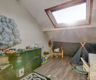 De eerste verdieping beschikt over twee ruime slaapkamers die voorzien zijn van airconditioning, een dressing en een badkamer met tweede toilet/ligbad en douche. Op de tweede verdieping bevinden zich nog drie bijkomende slaapkamers, waardoor de woning in totaal vijf slaapkamers telt en dus perfect geschikt is voor grotere gezinnen.