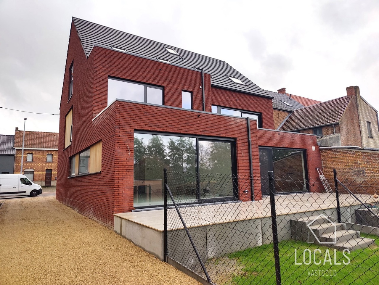 Deze triplex-woning is 190m² en is landelijk en strategisch gelegen, dit omgeven van groen en toch vlakbij het station, bushalte en makkelijke verbindingswegen. Bij het binnenkomen is er een traphal met gastentoilet, een ruime lichtrijke woonkamer met grote raampartijen en zicht op het terras en een ruime private tuin, open keuken met bijhorende berging. Op de verdieping bevindt zich een nachthal, apart toilet, badkamer met inloopdouche, 2 slaapkamers en een dressing. De zolder werd ingericht met 2 extra kamers & een 2e badkamer. U kan volgens het voorziene budget de keuken kiezen naar eigen smaak. Er is vloerverwarming op basis van lucht/waterwarmtepomp, gemeenschappelijke regenwaterput, ventilatiesysteem C+, zonnepanelen, aluminium met hoogrendementsbeglazing, .. kortom, een volledig instapklaar en kwalitatieve woonst zal worden afgeleverd. Verplicht dubbele carport aan te kopen. Er is mogelijkheid om achtergelegen grond bij aan te kopen. Gelegen in een kleinschalig nieuwbouwproject van 3 entiteiten (waarvan 66% verkocht). Prijzen excl. nutsvoorzieningen, BTW, verkooprechten en ereloon notaris. Voor meer informatie, plannen en lastenboek: 054 23 53 83 of info@localsvastgoed.be