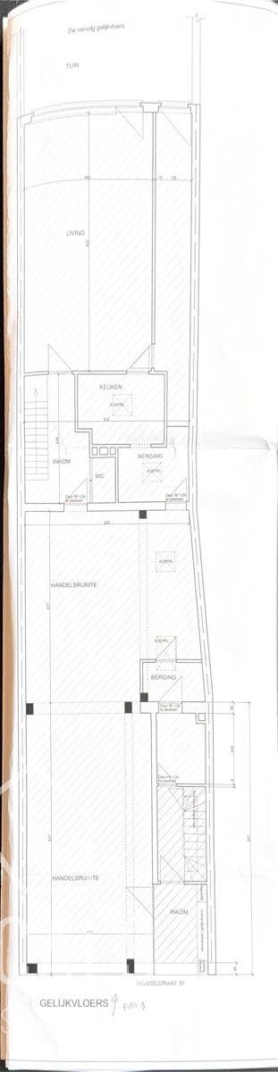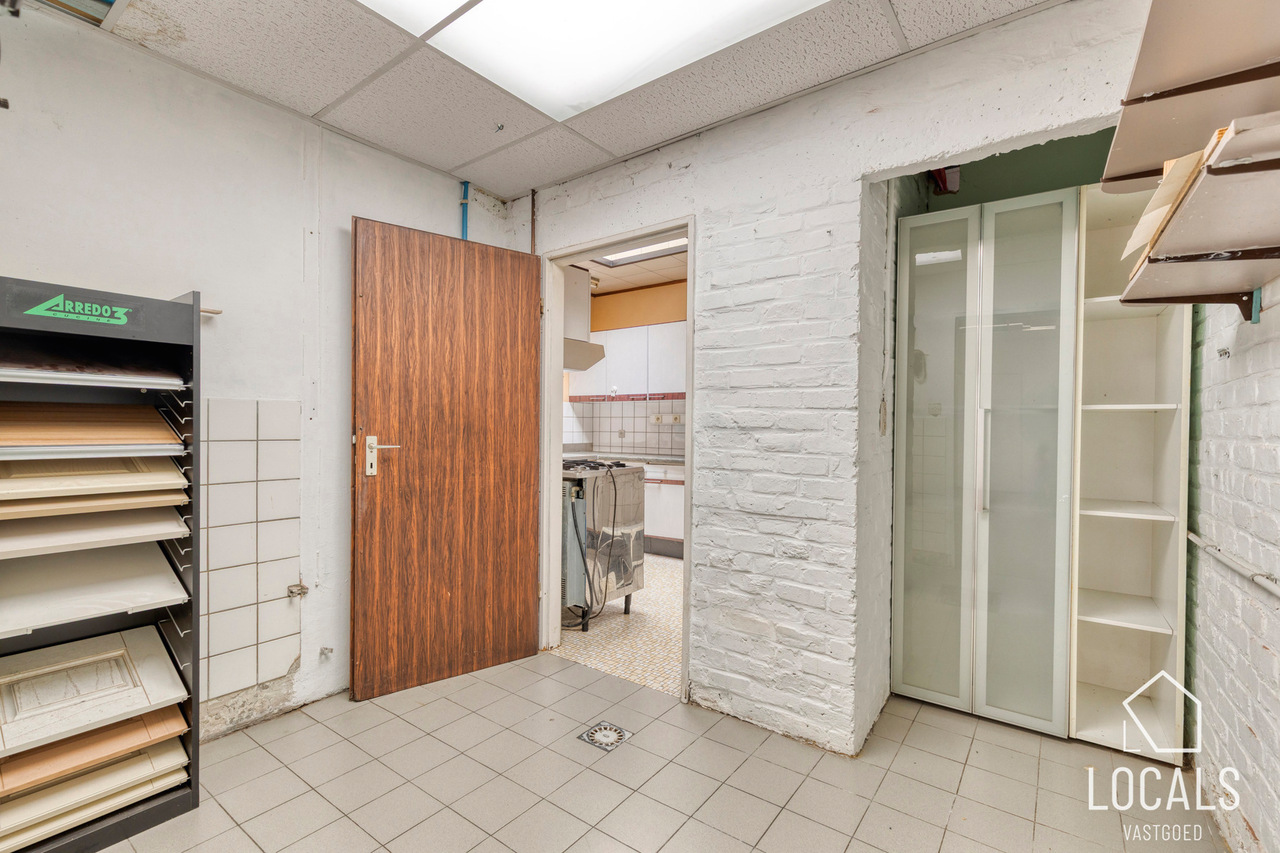 De grote handelsruimte vooraan biedt tal van mogelijkheden en kan naar eigen smaak worden ingericht: als winkel, kantoor, praktijkruimte, hobbykamer of zelfs als extra leefruimte. Achter deze ruimte bevindt zich de privé inkomhal die toegang geeft tot de lichtrijke leefruimte met eetplaats en zithoek. Verder zijn er een aparte keuken, een toilet en een ruime berging aanwezig, wat de woning bijzonder praktisch maakt.