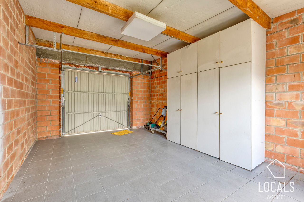 Op de eerste verdieping bevinden zich twee ruime slaapkamers en een badkamer voorzien van ligbad en een tweede toilet. Achteraan de woning is er een gezellig terras dat doorloopt in de onderhoudsvriendelijke tuin, ideaal om een sfeervolle buitenplek te creëren. De garage achteraan maakt het geheel compleet en biedt extra comfort.