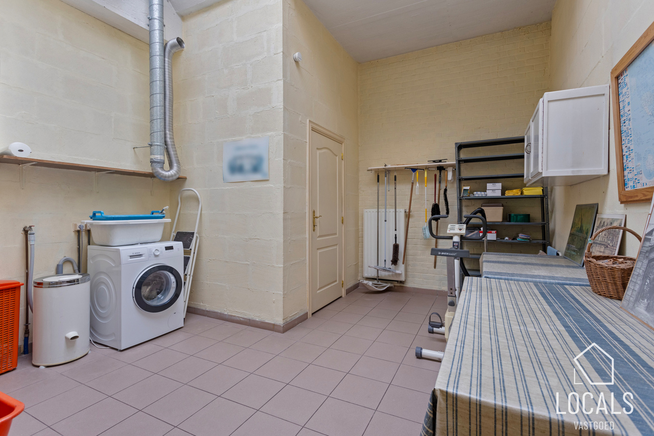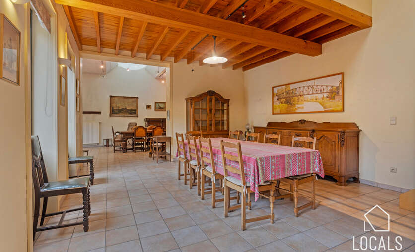 De eigendom heeft enorm veel ruimte en geniet verschillende gebruiksmogelijkheden. Er is een garage voor 2+ wagens alsook een grote berging. Palend aan de woning is een atelier van meer dan 100m² alsook een bijhorend bureau. Ideaal voor een professionele activiteit/kantoor/praktijk/sport (dansschool, fitness, …)/stockage/… of simpelweg een hobby die veel plaats vraagt. Deze oppervlakte kan eventueel gecombineerd worden met de woonfunctie, ideaal als kangoeroewoning.