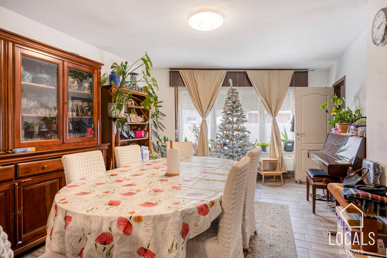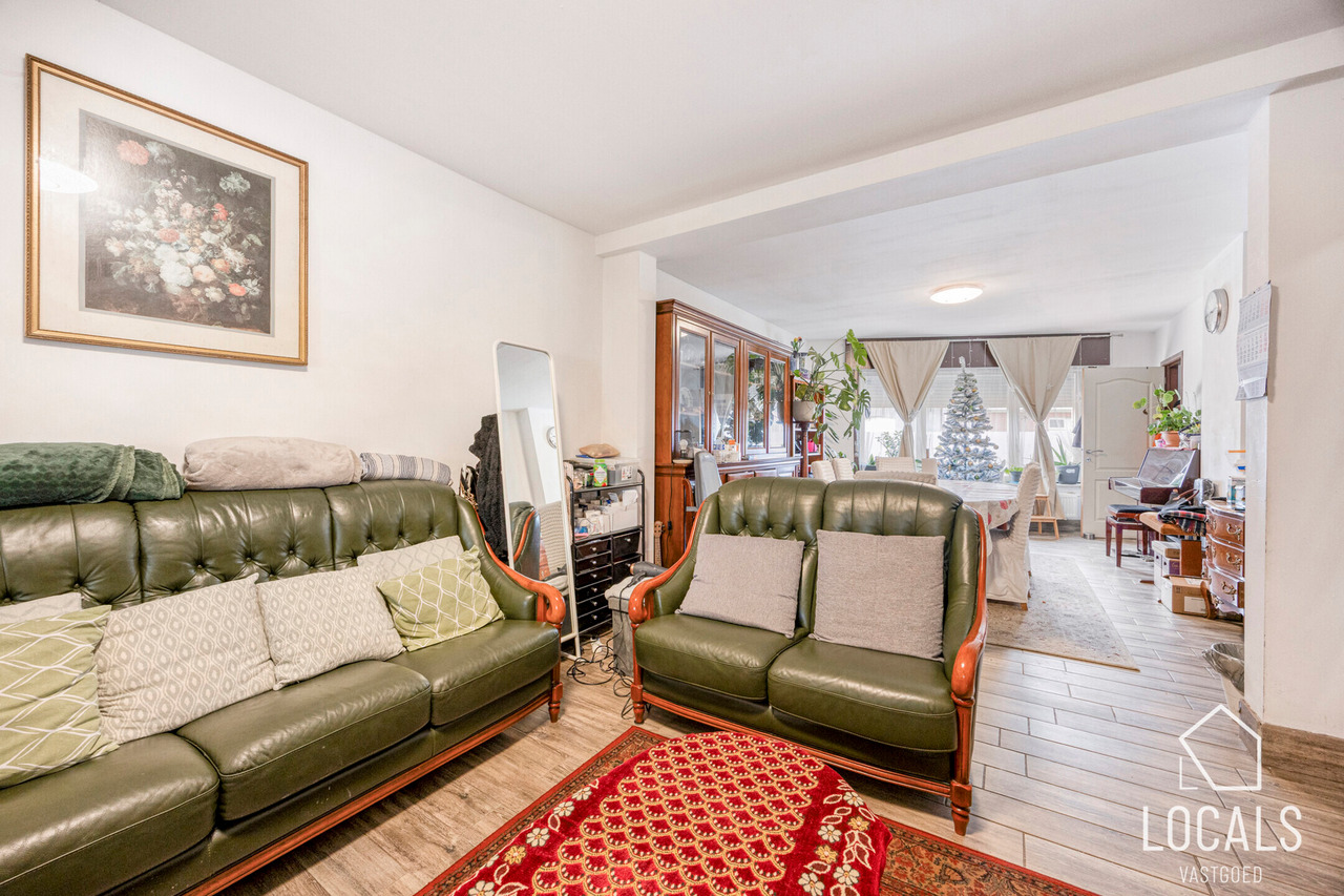 Te koop in Appelterre-Eichem, nabij het dorp en op 5 min. rijden van het centrum van Ninove bevindt zich deze gesloten bebouwing met 3 slaapkamers. Inkomhal met apart gastentoilet, living, ingerichte keuken, ruim terras en grote tuin. Er is een kelder aanwezig. De bovenverdieping omvat een nachthal met 3 slaapkamers en een badkamer. Centrale verwarming op aardgas.