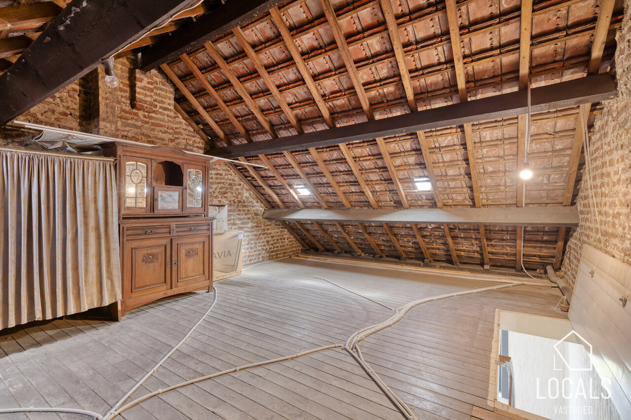 Op de eerste verdieping bevinden zich twee slaapkamers, evenals de vernieuwde badkamer die werd uitgerust met een tweede toilet, lavabo en inloopdouche. De zolder van ongeveer 30 m² is bereikbaar via een vaste trap en biedt, mits verdere afwerking, de mogelijkheid om ingericht te worden als een volwaardige master bedroom. De elektrische installatie is ook conform! Deze woning in Ninove biedt tal van mogelijkheden voor wie op zoek is naar een deels gerenoveerde woning met karakter, uitbreidingspotentieel en een gunstige ligging nabij alle voorzieningen. Bel 054 23 53 83 of mail naar info@localsvastgoed.be en kom deze unieke kans zelf ontdekken!