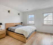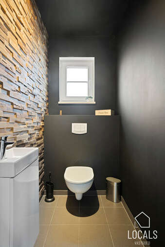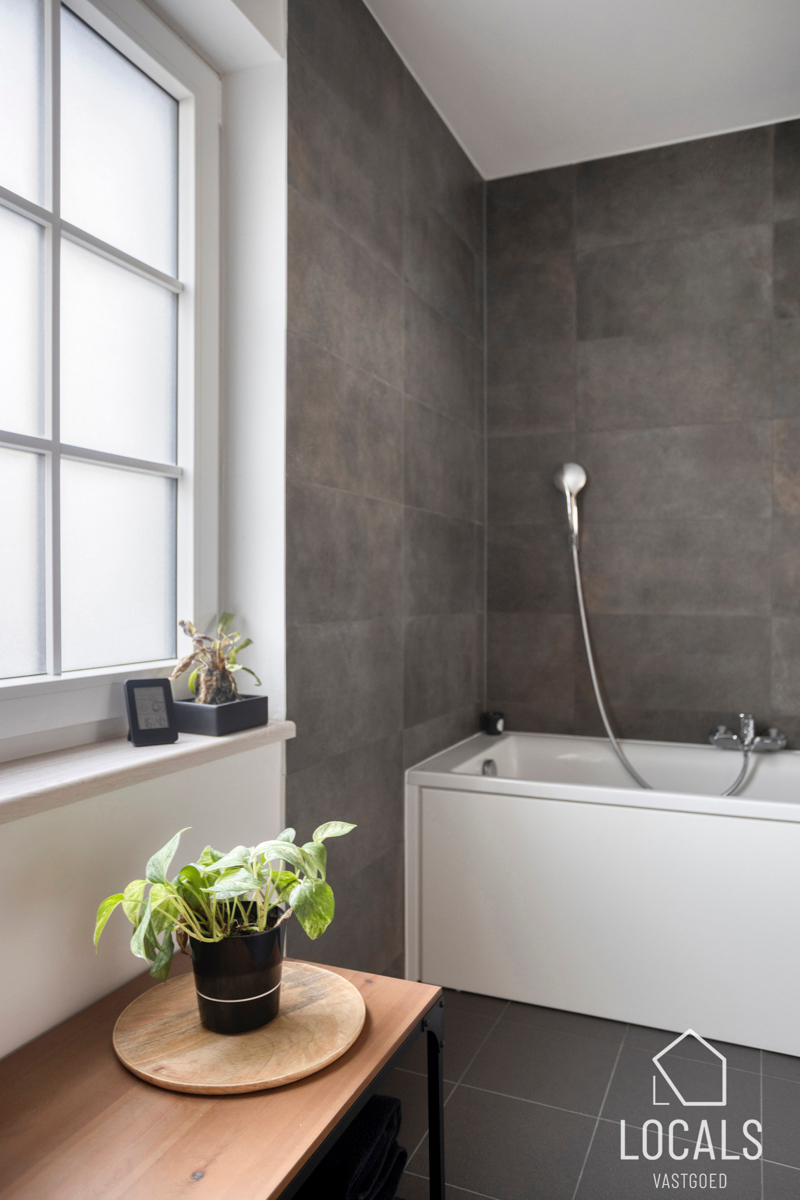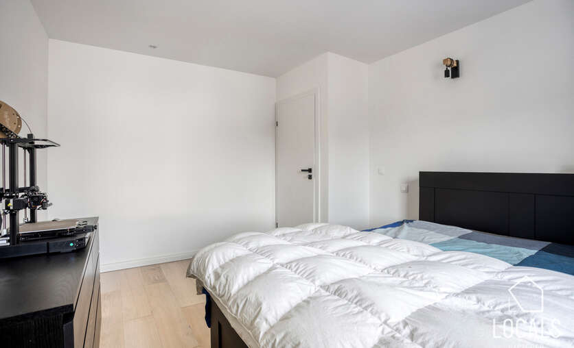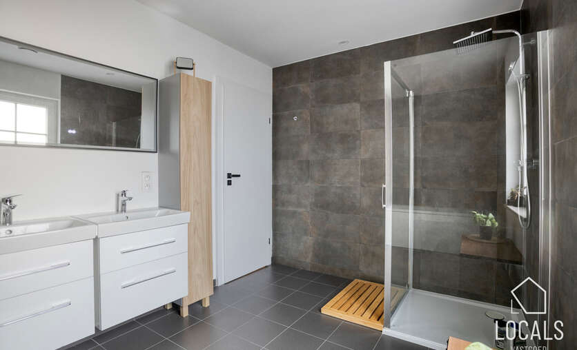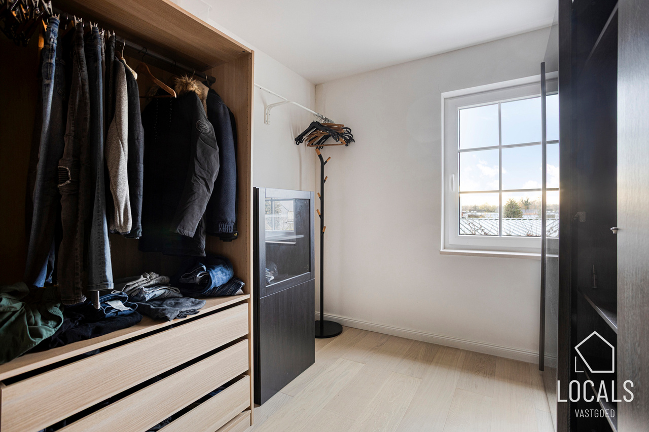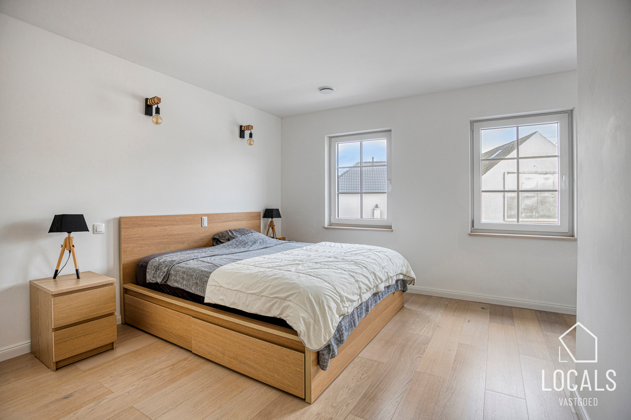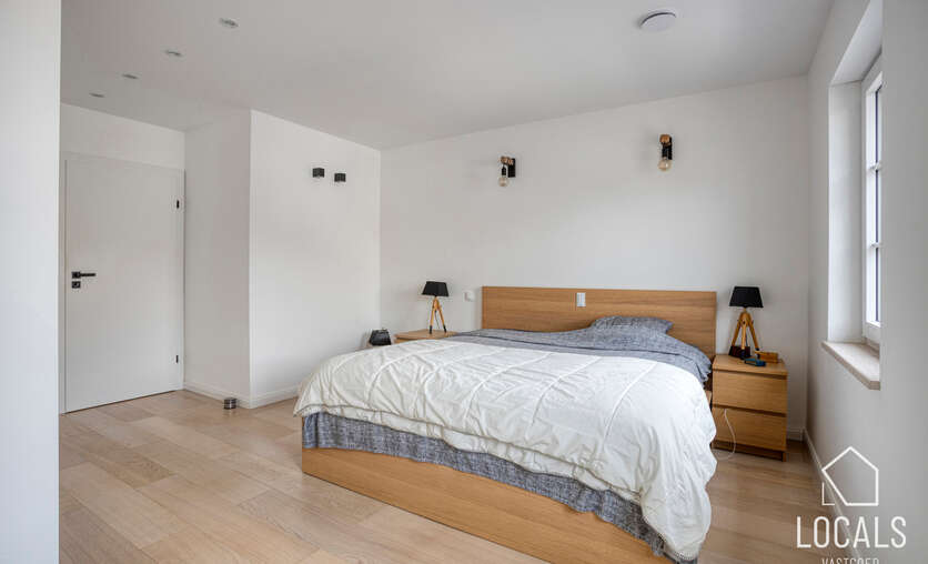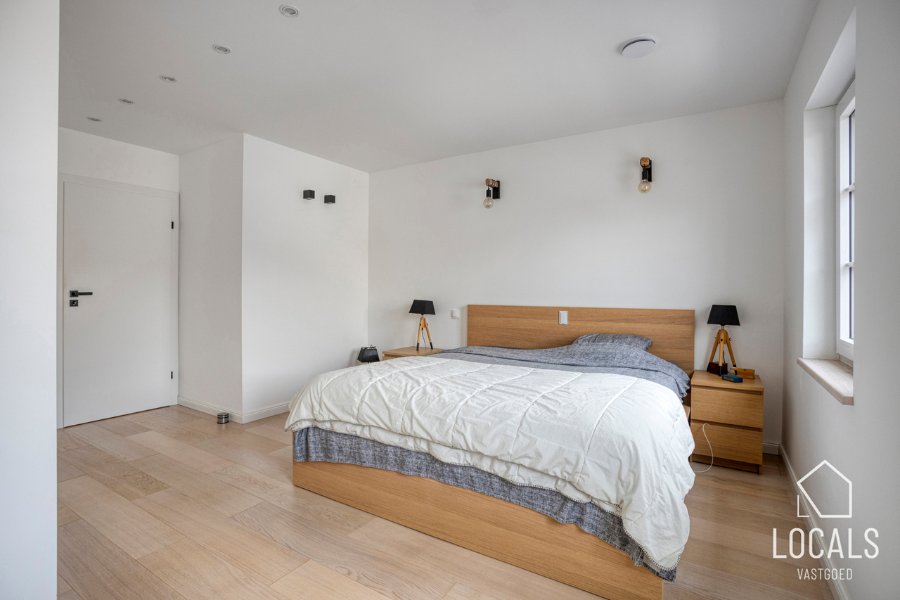 De eerste verdieping telt twee ruime slaapkamers, een volwaardige kinderkamer of dressing, een apart toilet en een moderne badkamer met dubbele lavabo, ligbad en inloopdouche.