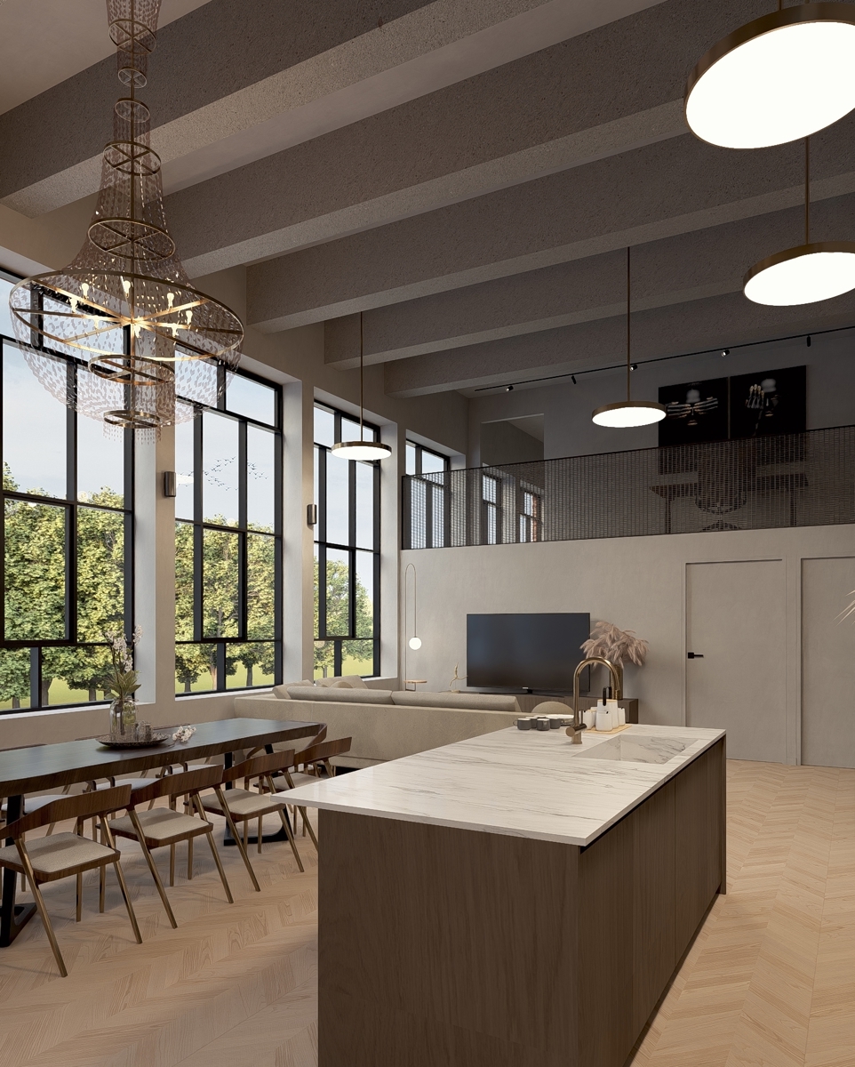Elk appartement geniet een hoge afwerkingsgraad en behoudt zijn industriële karakter dankzij de verticale raampartijen en hoge plafonds. De architect en bouwheer zorgden voor een efficiënte en hedendaagse indeling waardoor elk appartement een ruimtelijk gevoel en fijne lichtinval heeft.