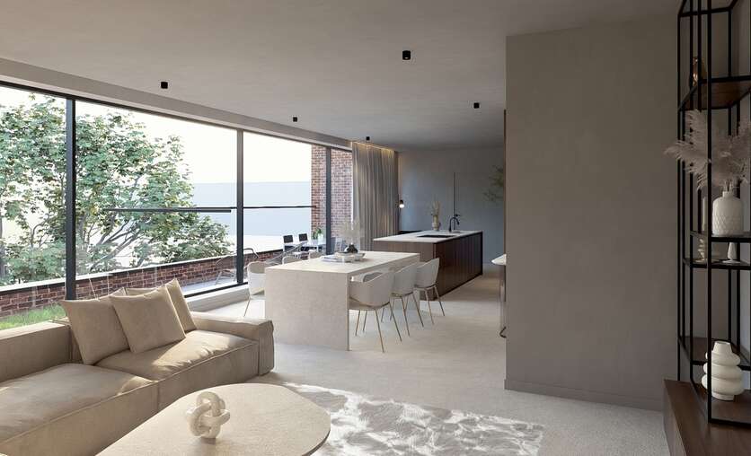 Elk appartement geniet een hoge afwerkingsgraad en behoudt zijn industriële karakter dankzij de verticale raampartijen en hoge plafonds. De architect en bouwheer zorgden voor een efficiënte en hedendaagse indeling waardoor elk appartement een ruimtelijk gevoel en fijne lichtinval heeft.