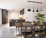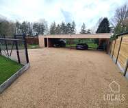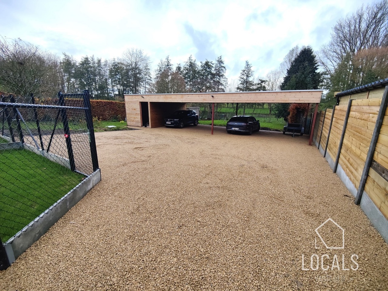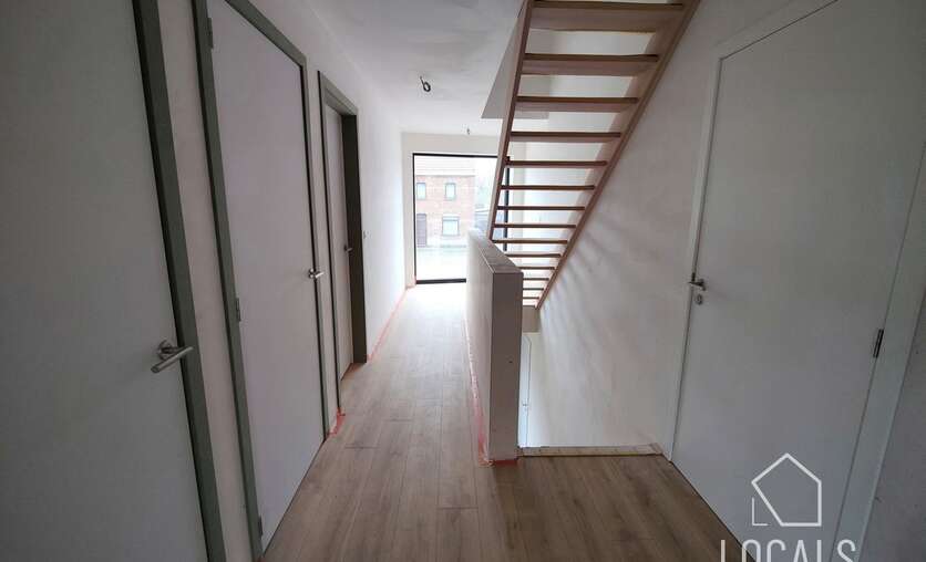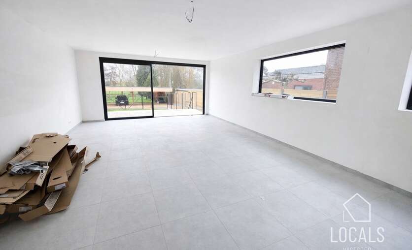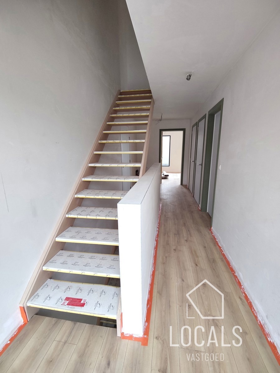 Dit kleinschalig nieuwbouwproject telt 3 ruime entiteiten (waarvan 66% verkocht). Deze triplex-woning is 190m² en is landelijk en strategisch gelegen, dit omgeven van groen en toch vlakbij het station, bushalte en makkelijke verbindingswegen. Bij het binnenkomen is er een traphal met gastentoilet, een ruime lichtrijke woonkamer met grote raampartijen en zicht op het terras en een ruime private tuin, open keuken met bijhorende berging. Op de verdieping bevindt zich een nachthal, apart toilet, badkamer met inloopdouche, 2 slaapkamers en een dressing. De zolder werd ingericht met 2 extra kamers & een 2e badkamer. U kan volgens het voorziene budget de keuken kiezen naar eigen smaak. Er is vloerverwarming op basis van lucht/waterwarmtepomp, gemeenschappelijke regenwaterput, ventilatiesysteem C+, zonnepanelen, aluminium met hoogrendementsbeglazing, .. kortom, een volledig instapklaar en kwalitatieve woonst zal worden afgeleverd. Verplicht dubbele carport aan te kopen. Er is mogelijkheid om achtergelegen grond bij aan te kopen. Prijzen excl. nutsvoorzieningen, BTW, verkooprechten en ereloon notaris. Voor meer informatie, plannen en lastenboek: 054 23 53 83 of info@localsvastgoed.be